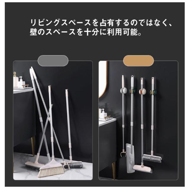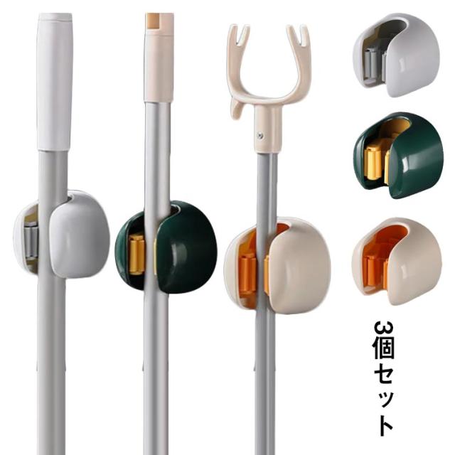 【3個セット】モップホルダー 強力粘着 壁掛けフック 耐荷重4kg モップ ほうき 清掃道具 傘 ローラー ほうき モップ おしゃれ 壁 穴開けない 傷つけない 収納 送料無料