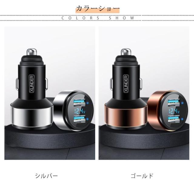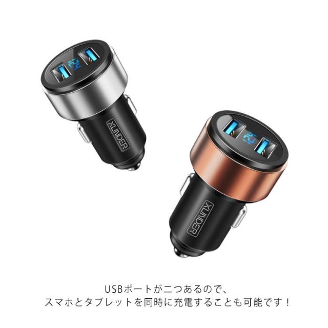 シガーソケット USB カーチャージャー 車載充電器 シガー挿込 デジタル 電圧計 ボルテージメーター 電圧 デジタル表示 iPhone スマホ 2ポート急速充電2台同時 5.4A Quick Charge 自動車 携帯 車 充電 電圧チェッカー 電流チェッカー 電流テスター ソケット 送料無料