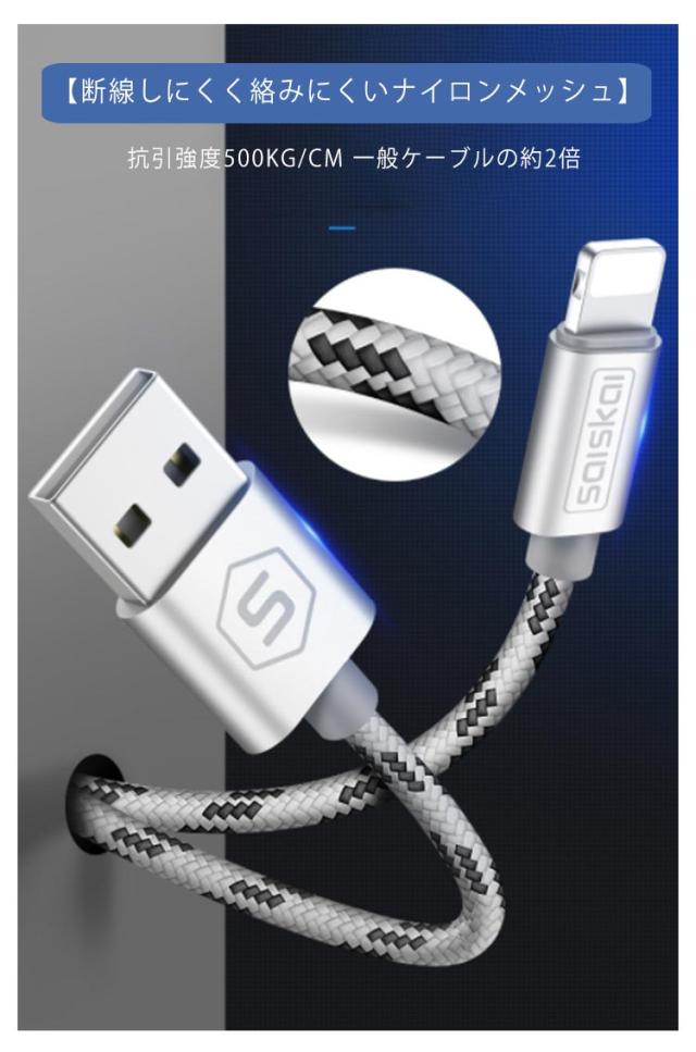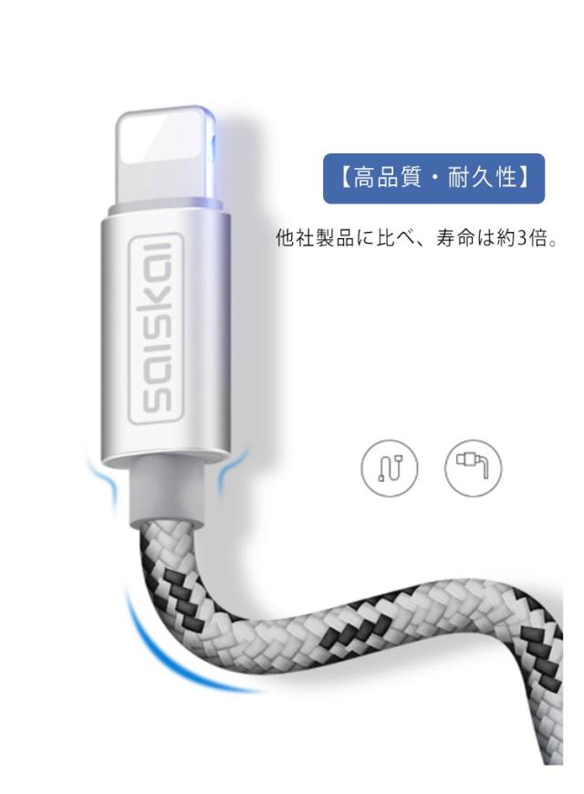 | お得な2本セットiPhone充電ケーブル。 【高品質・耐久性】 他社製品に比べ、寿命は約3倍。 【急速充電対応】 高品質な銅線と多重構造により、安定した高速充電を実現。 【断線しにくく絡みにくいナイロンメッシュ】 抗引強度500KG/CM 一般ケーブルの約2倍 【データ転送】 USB充電とデータ転送が同時に可能です。 【スマートチップ内蔵】 コネクタ部分にスマートチップが内蔵されているため、過充電を防ぎ、安全かつ効率的に充電が可能です。 | |