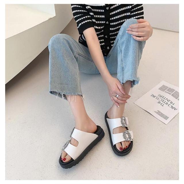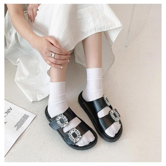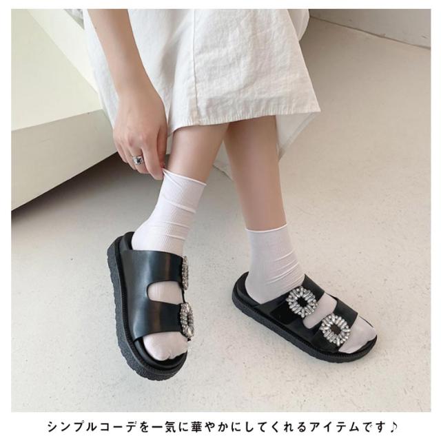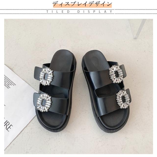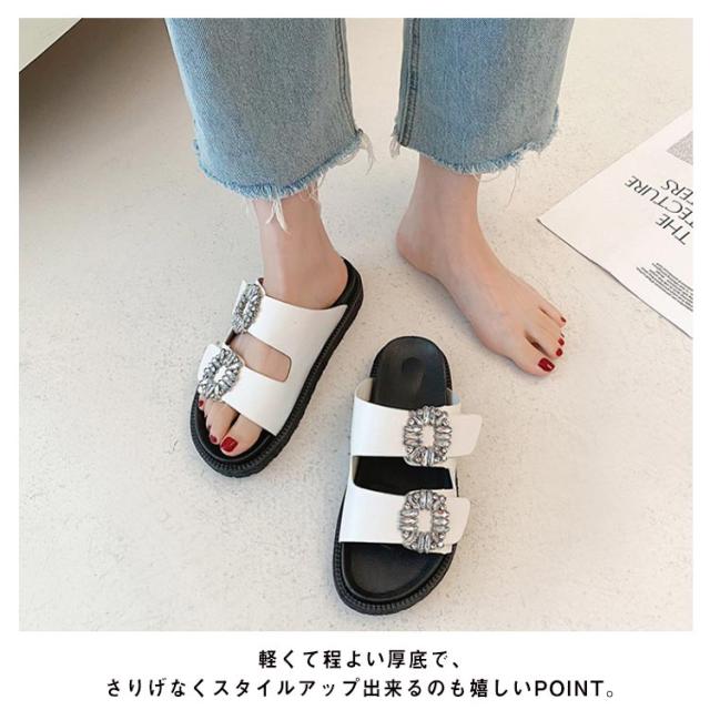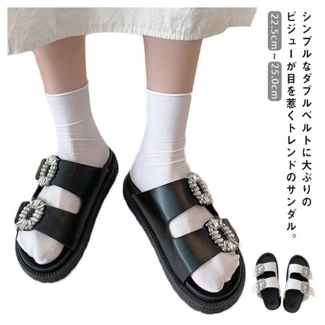サンダル レディース ダブルベルト ビジュー 厚底 フラットサンダル ぺたんこ 靴 ダブルベルトサンダル ミュール つっかけ 走れる 歩きやすい 痛くない 軽い 柔らかい カジュアル きれいめ 通勤 デイリー リゾート