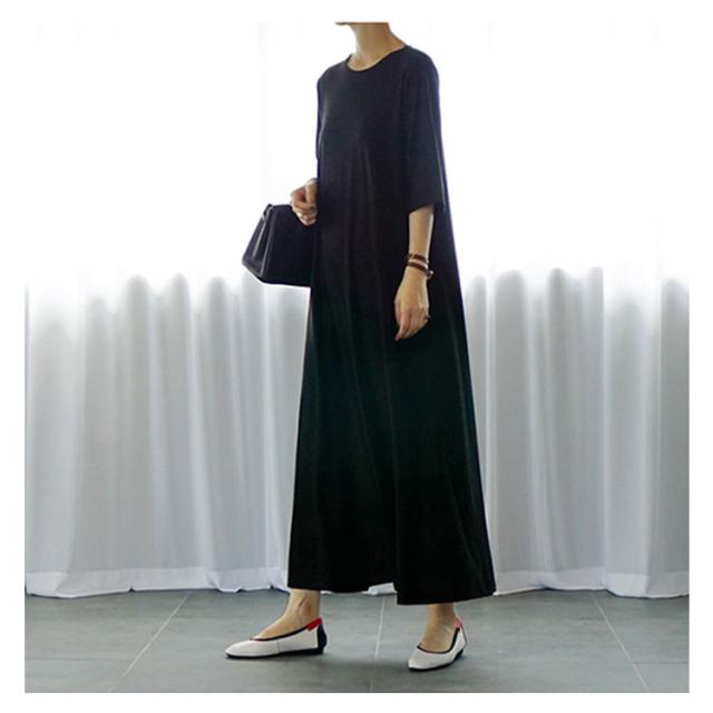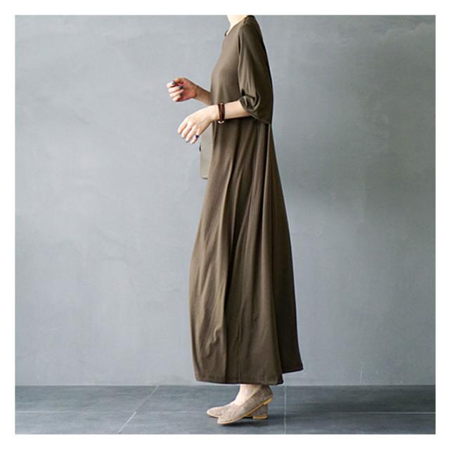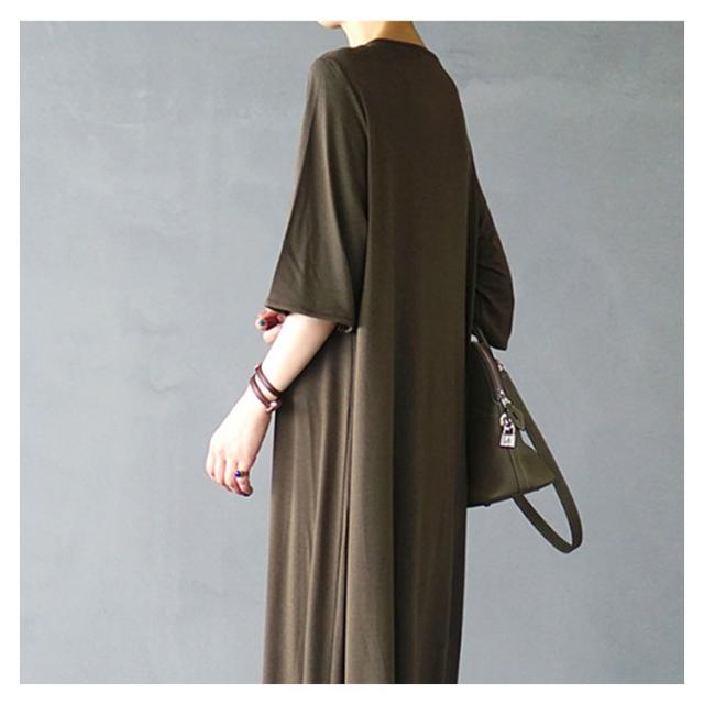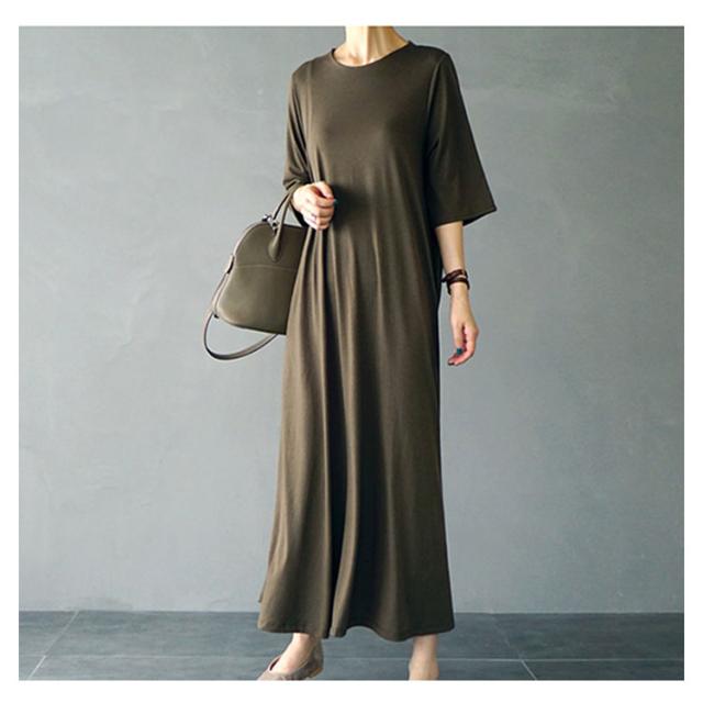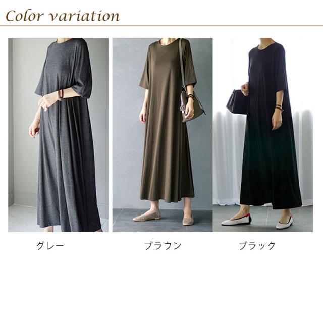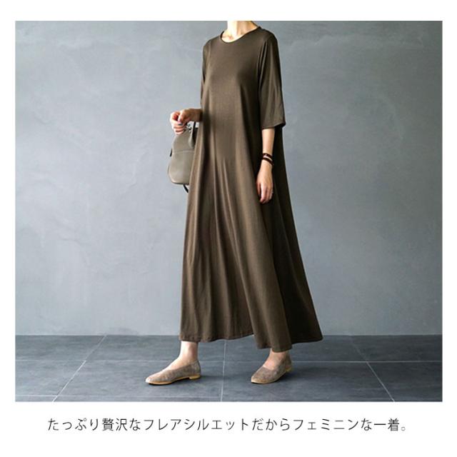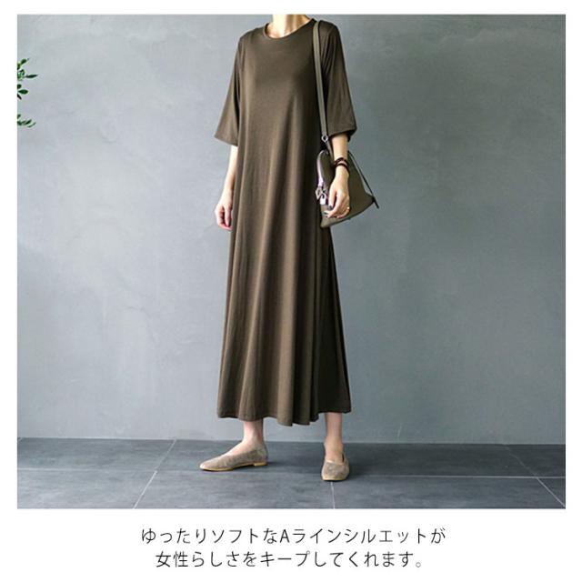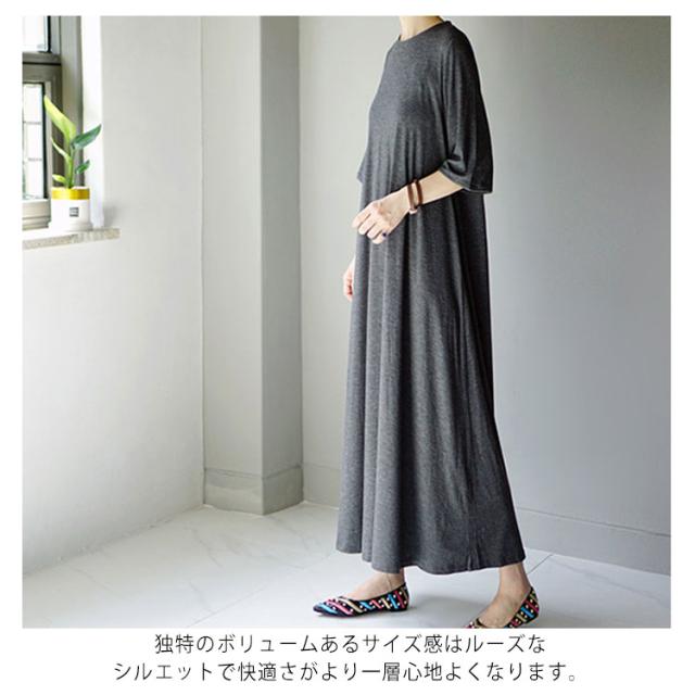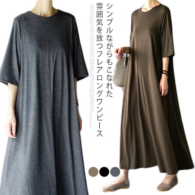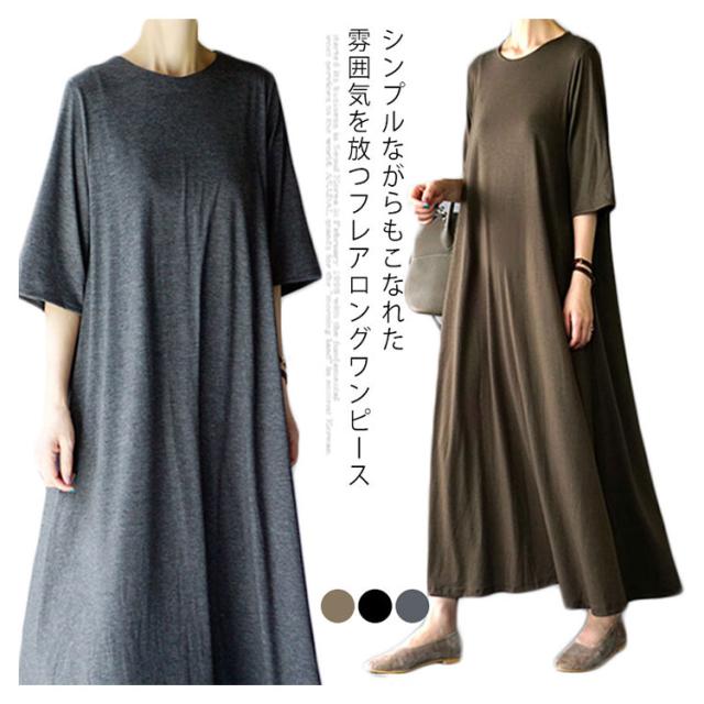 フレアマキシワンピース マキシワンピース ロングワンピース フレア tシャツワンピース ロング丈 マキシ丈 半袖 5分袖 リラックス ゆったり シンプル 無地 夏 体型カバー
