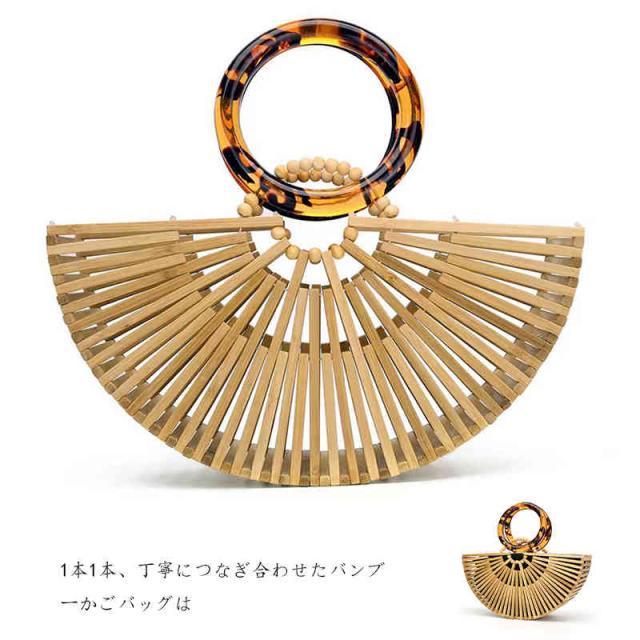 ハーフムーン バンブーバッグ 竹 カゴ かごバッグ レディース サマーバッグカゴバッグ クラッチバッグ ハンドバッグ バスケットバッグ 竹バッグ 籠バッグ 天然素材 ナチュラル かばん 鞄 夏 シンプル ハーフムーン型