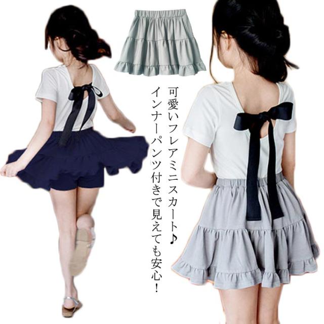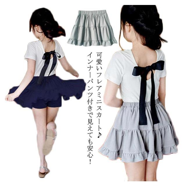 フレアスカート インナーパンツ付き フリル 女の子 キッズ ジュニア スカート 送料無料 レギンス 春夏 ミニスカート 110 120 130 140 150 160 165 通園 通学 キュロットスカート