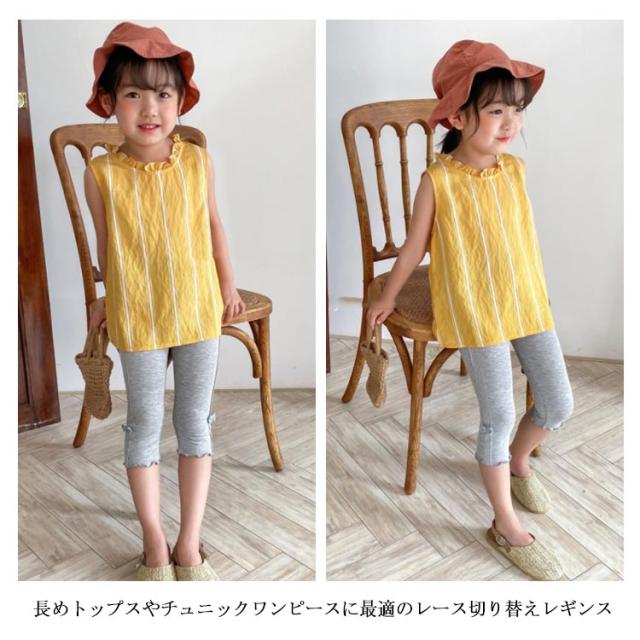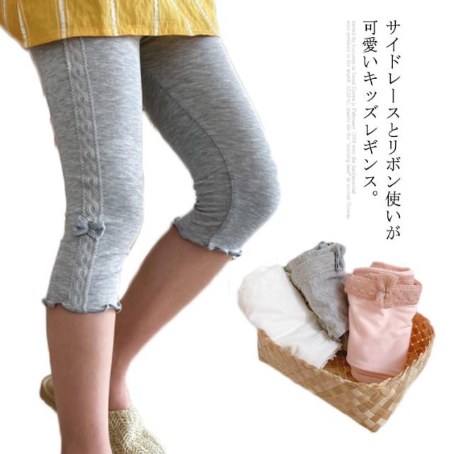 レギンス 7分丈 子供 レギンスレギパン 送料無料 スパッツ サイドレース リボン メロウフリル 女の子 可愛い 春夏 膝下 レギンス 100 110 120 130 140