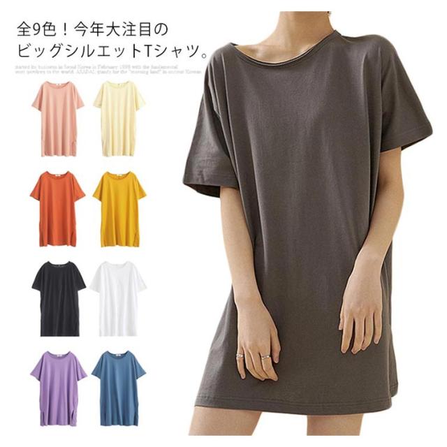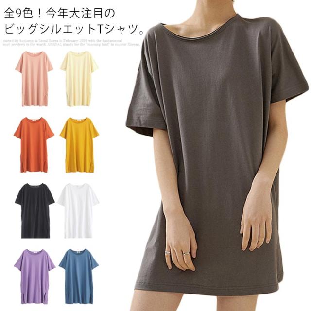 全9色!ビッグTシャツ Tシャツ ビッグシルエット オーバーサイズ レディース 半袖Tシャツ 無地tシャツ 大きサイズ チュニック丈 ワンピ ラウンドネック シンプル 春 夏