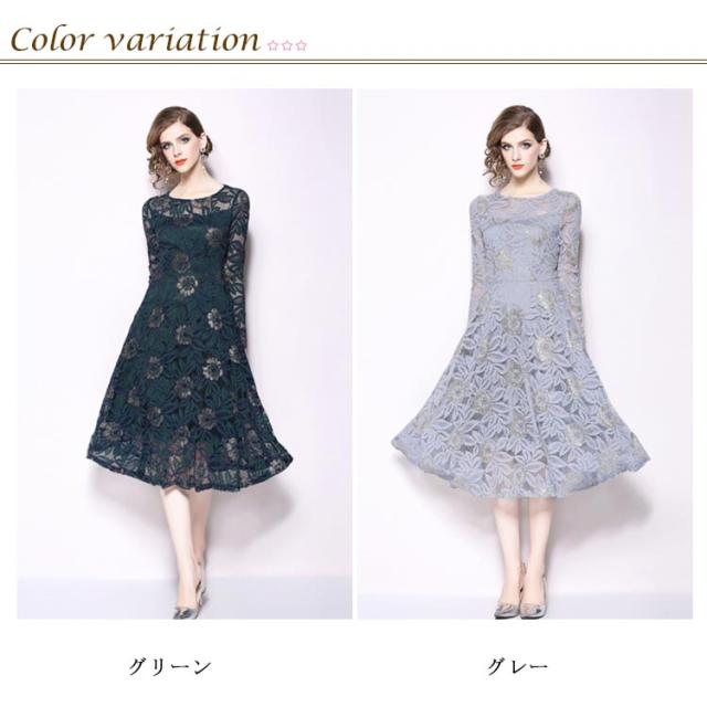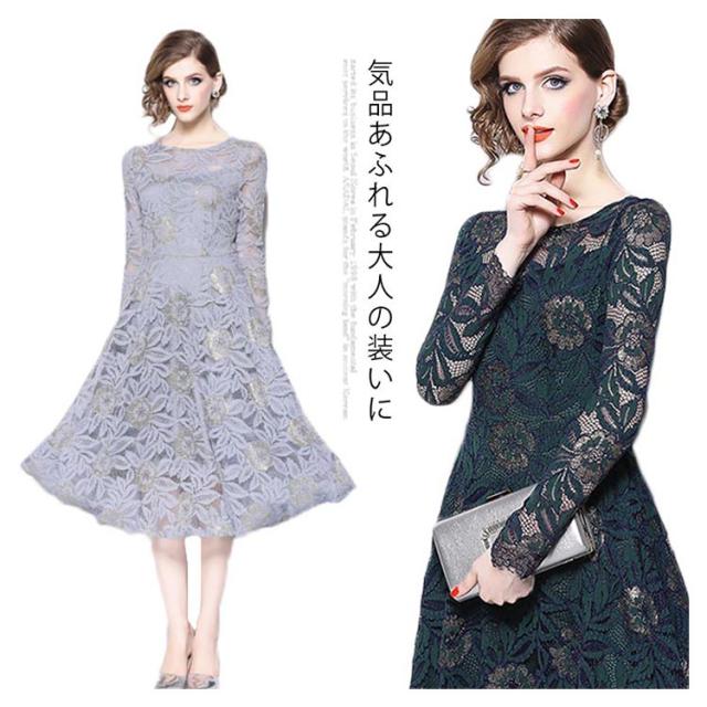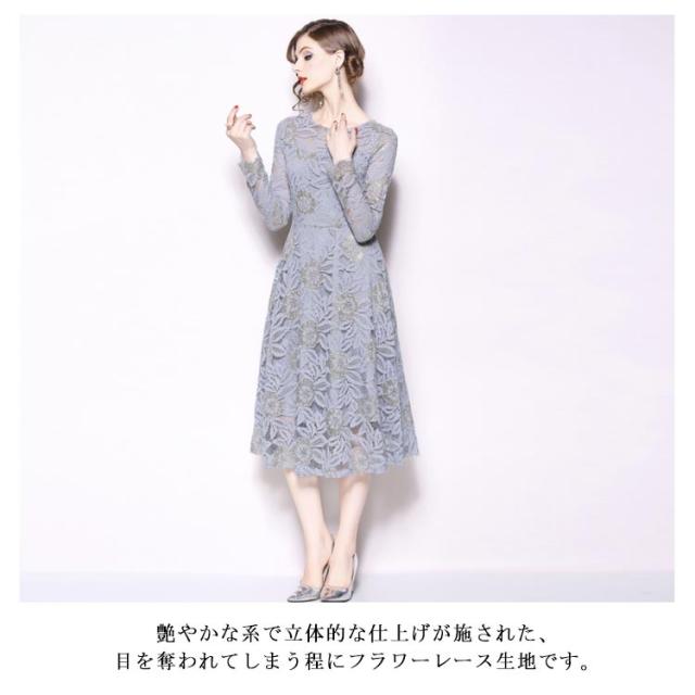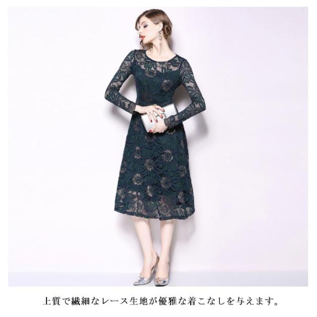 結婚式 ワンピース パーティードレス ミモレ丈 総レース 長袖 パーティー ドレス ロング 大きいサイズ ウェディングドレス ウエディング ドレス 二次会 花嫁 20代 30代 40代 50代 大人 上品