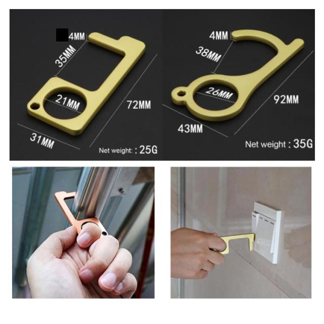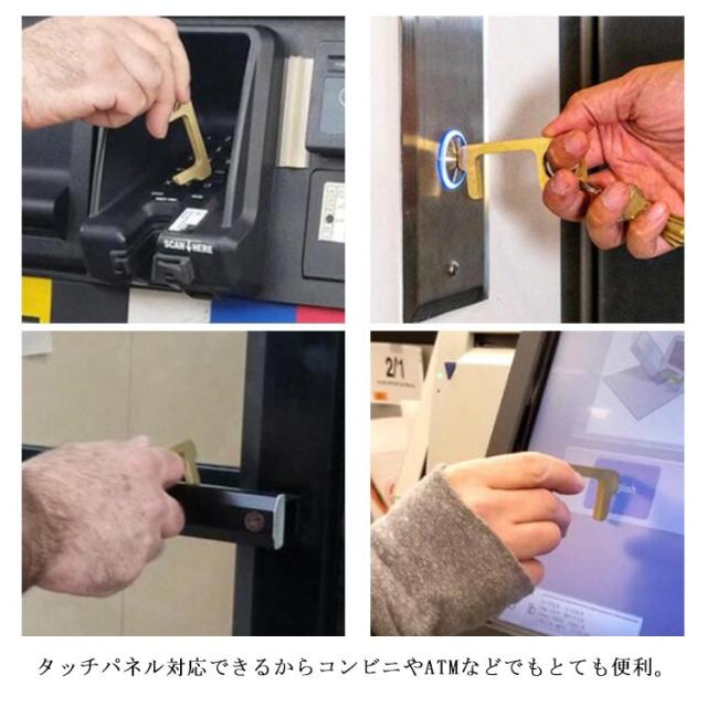 | 誰が触れたかわからない場所でも安心♪接触防止ドアオープナー。 外出する時、エレベーターやATM、手すり、ドアノブなど直接触らなくすむ便利グッズ。 お手軽サイズでキーリングやネックストラップなどに取り付けて、気軽に携帯できる。 タッチパネル対応できるからコンビニやATMなどでもとても便利。 | |