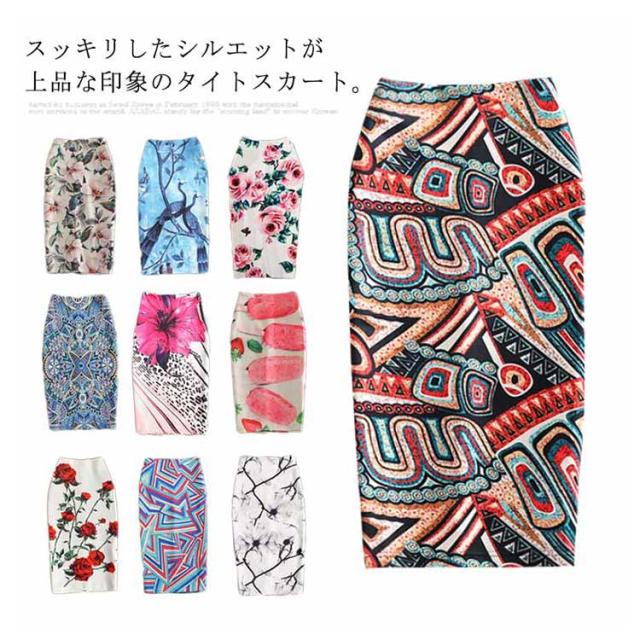 タイトスカート スカート ロング丈 送料無料 膝丈 花柄 エスニック レディース モード感 ハイウェスト スリット ペンシルスカート オフィス OL 通勤 お呼ばれ 二次会 おしゃれ