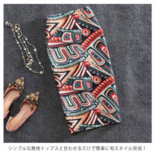 | スッキリしたシルエットが上品な印象のタイトスカート。 周りと差がつくエスニック柄が注目される間違いなしの存在。 シンプルな無地トップスと合わせるだけで簡単に旬スタイル完成! ストレッチのある生地で、タイトながら窮屈感なく、穿き心地GOOD! スリムなシルエットなので、着痩せ効果もバツグン。 ハイウェスト仕様で、脚長&くびれを叶っちゃう優れもの。 | |