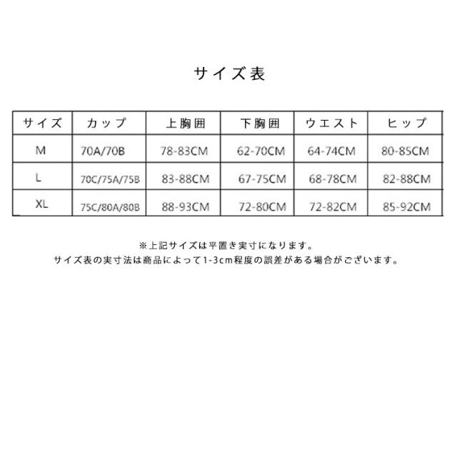 | サイズについての説明 | サイズ表/セット内容:ブラ+ショーツ |