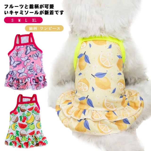犬服 キャミソール 果物 フルーツ 柄 総柄 ワンピース ドッグウェア S M L XL 送料無料 春 夏 秋 キャミ ワンピ 小型犬用 ペット ペット用品 ペットグッズ 犬用品