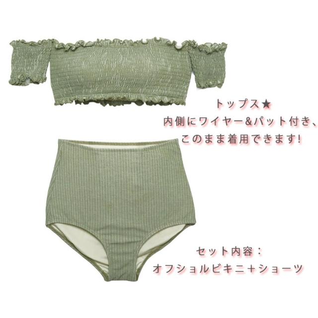 | サイズについての説明 | サイズ表/セット内容:オフショルビキニ+ショーツ |