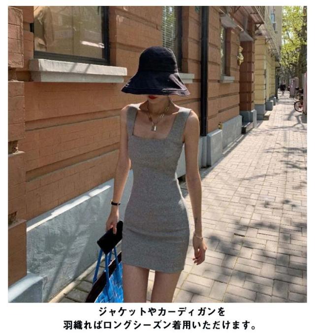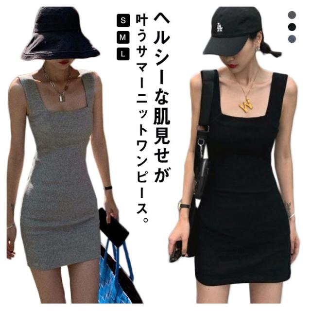 【送料無料】ミニワンピース タイト ノースリーブ スクエアネック ミニワンピ キャミワンピ タンクトップワンピ ストレンチ 韓国 大人可愛い ミニ丈 ニットワンピース タイト セクシー シンプル 白 黒 無地 春夏秋
