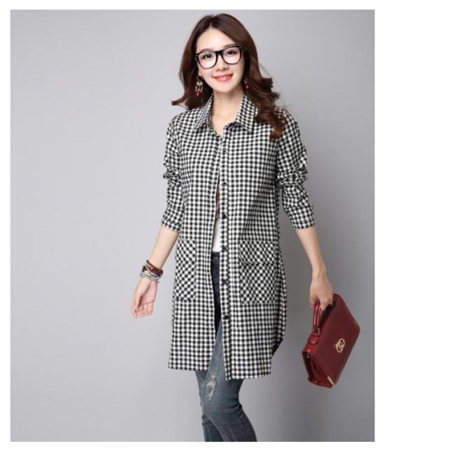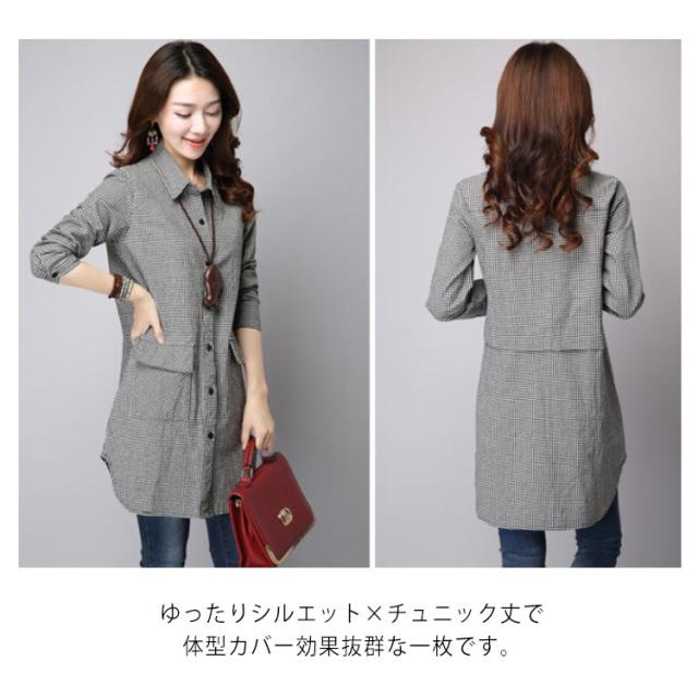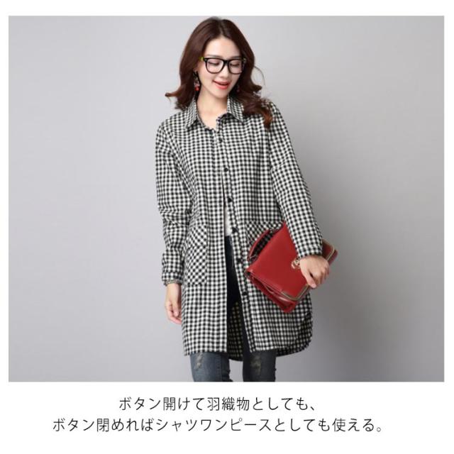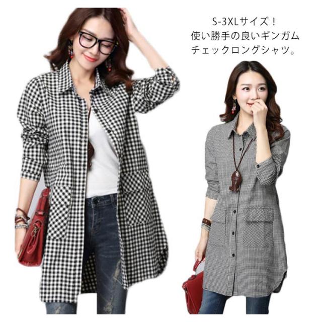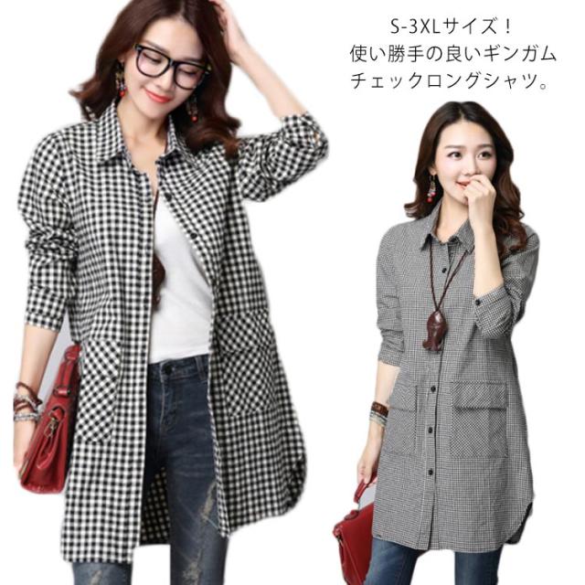 S-3XLサイズ!チェック柄ロングシャツ シャツ ロング丈 ギンガムチェック ロングシャツ チュニック 長袖 カジュアルシャツ ポケット付き 大きサイズ 春服 秋服 おしゃれ レディース