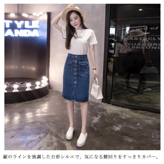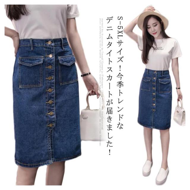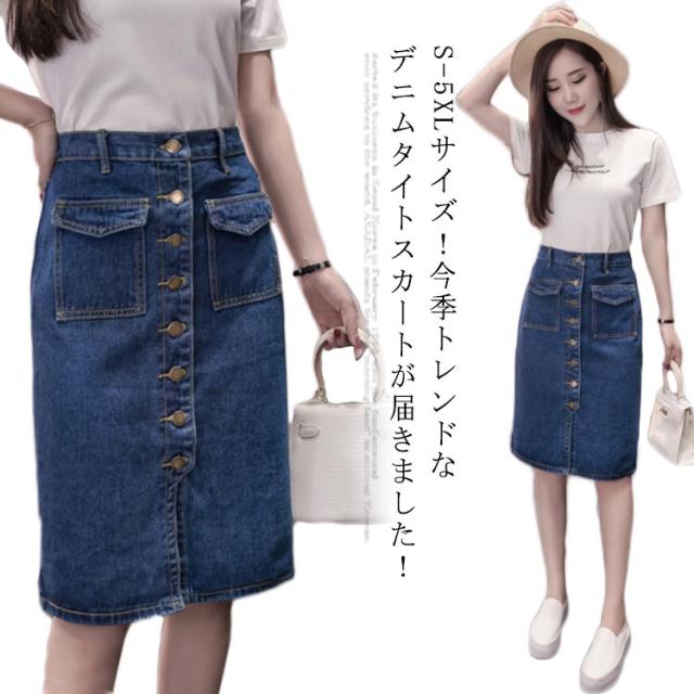 S-5XLサイズ!前ボタンデニムスカート デニムタイトスカート スカート デニムスカート デニム タイトスカート 膝丈 ハイウエスト 大きサイズ おしゃれ 可愛い 春 夏 秋