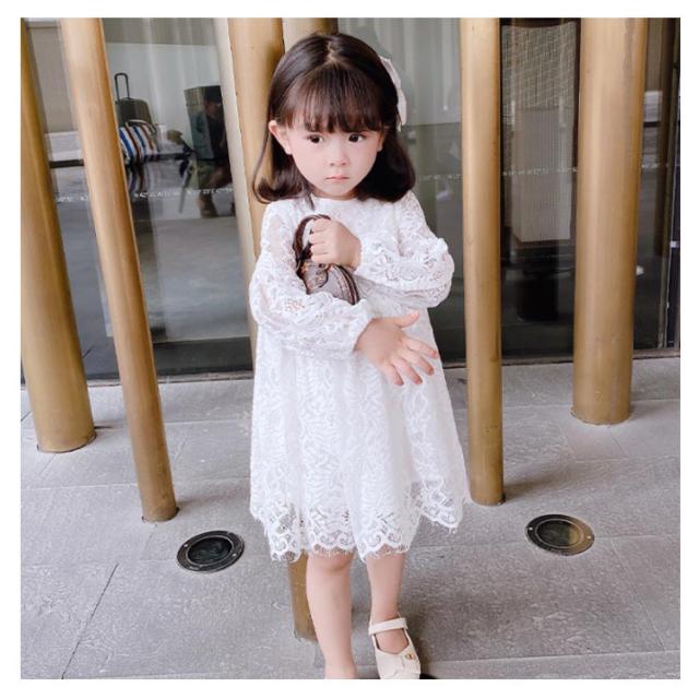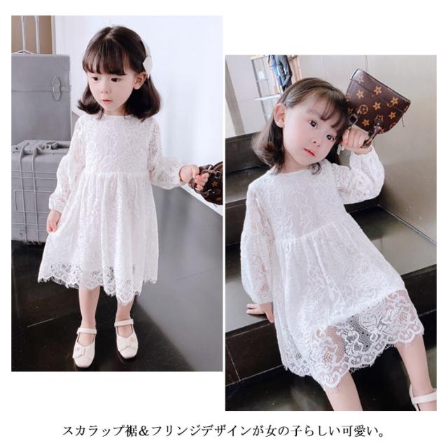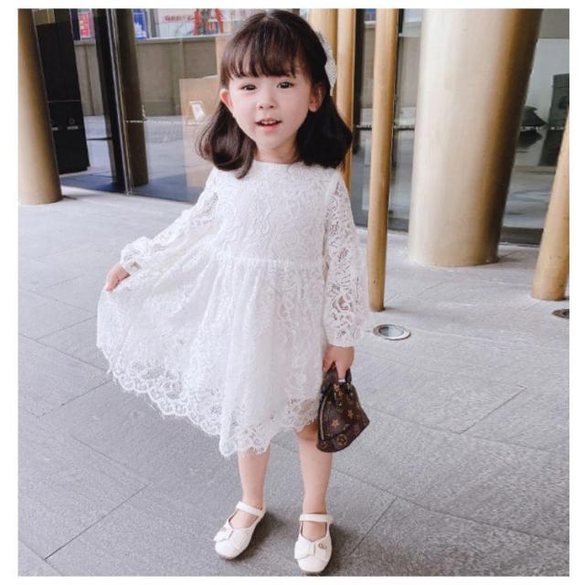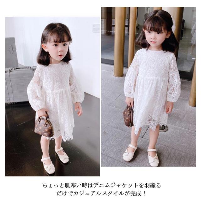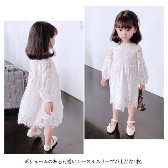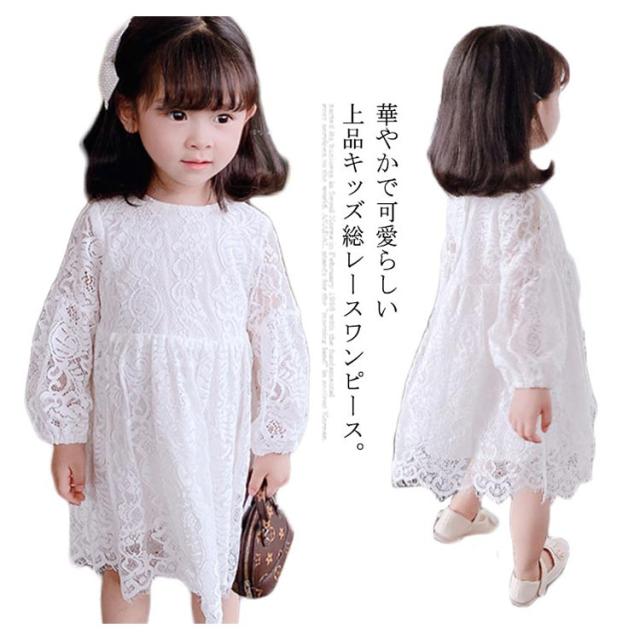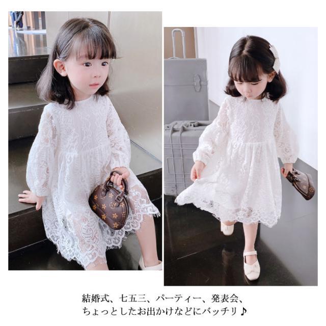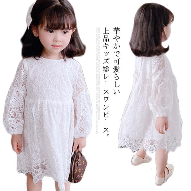 レース ワンピース ドレス 長袖 子供服 送料無料 女の子 可愛い 結婚式 入学式 入園式 パーティー お姫様 総レース ワンピース 90cm〜120cm