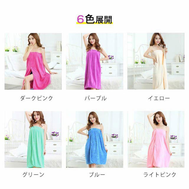 | シンプル可愛い、無地のラップタオル(巻きタオル)です。 ふわふわ柔らかくて、吸水性抜群のマイクロファイバー素材。 細く長く耐久性に優れた繊維で、洗濯時の毛羽落ちもありません。 プールでのお着替えや、レジャーでの水遊びなどでパッとかぶったり、羽織ったり、すぐに水分を吸収できて便利です。 上辺(上のゴム部分)はボタンを留める位置によって幅を変えられるので、体の大きさや、身につける場所(肩・胸・腰など)によって自由に調節していただけます。 | |