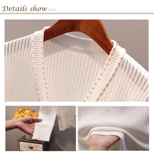 全2色×4サイズ!透かし編みカーディガン ニットカーディガン レディース サマーカーディガン Vネック ニット カーディガン ポケット付き 長袖 ショート丈 薄手 春 夏 秋