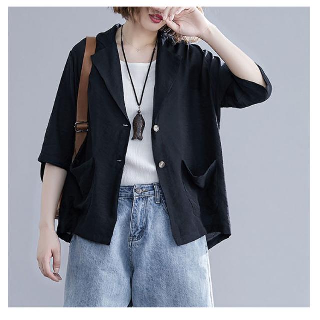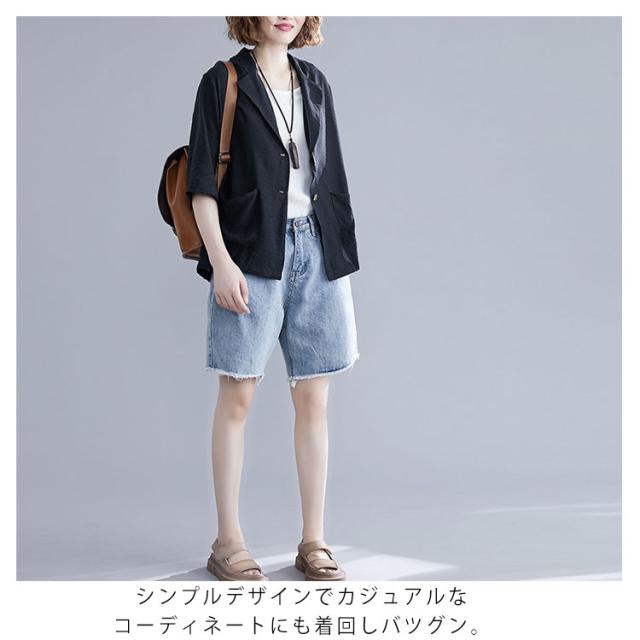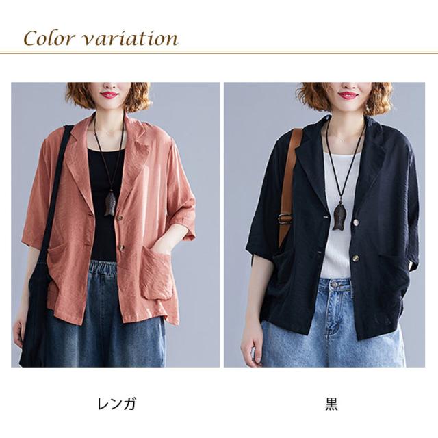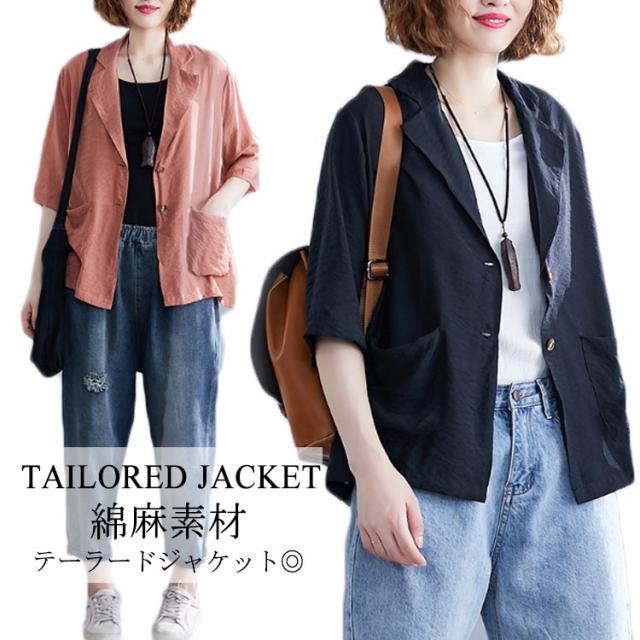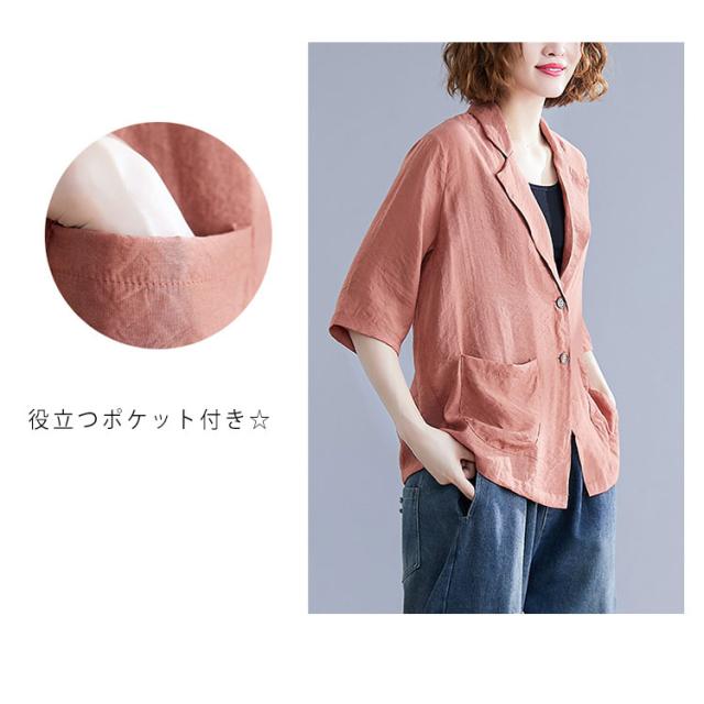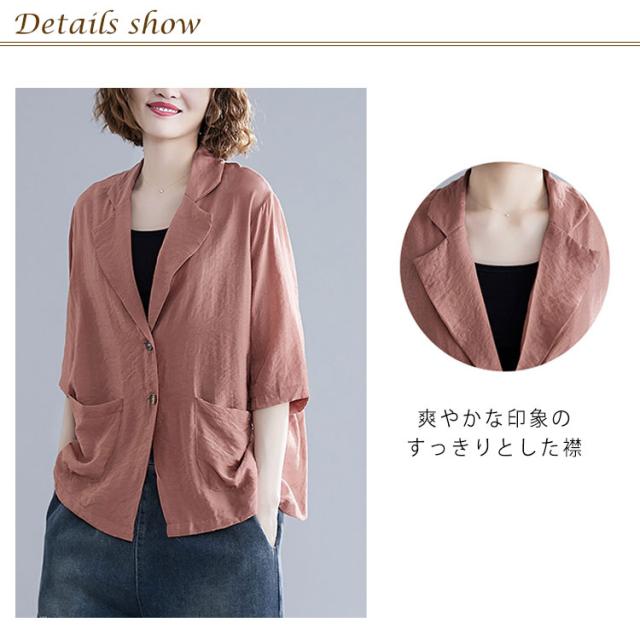 サマージャケット 薄手 ジャケット 7分袖 リネン テーラードジャケット レディース 綿麻 テーラードジャケット ショート丈 レディースジャケット カジュアルジャケット オフィス 通勤 OL フォーマル 入学式 卒業式 面接 送料無料