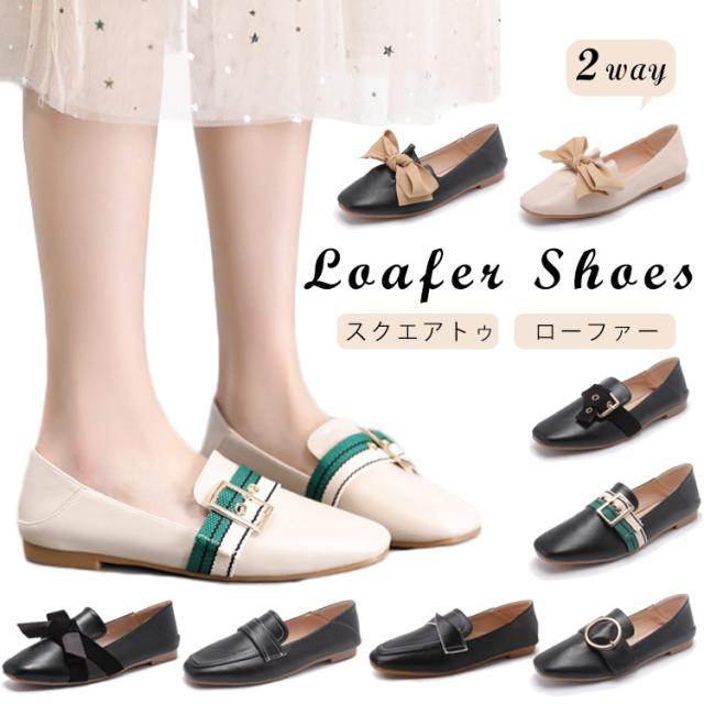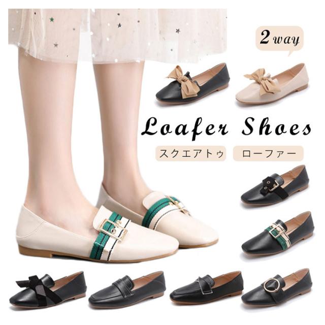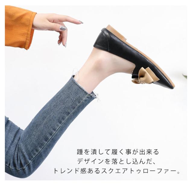 ローファー パンプス シューズ スクエアトゥ パンプス ぺたんこシューズ レディース パンプス フラットパンプス フラットシューズ ローヒール パンプス マタニティ モカシンシューズ スリッポン シューズ 通勤 痛くない 送料無料