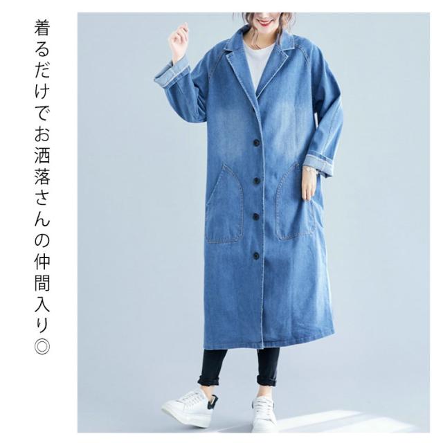 デニム コート ロングコート デニム トレンチコート スプリングコート デニムコート レディース Gジャン デニム ジャケット チェスターコート カジュアル 秋 春 大人 上品 送料無料
