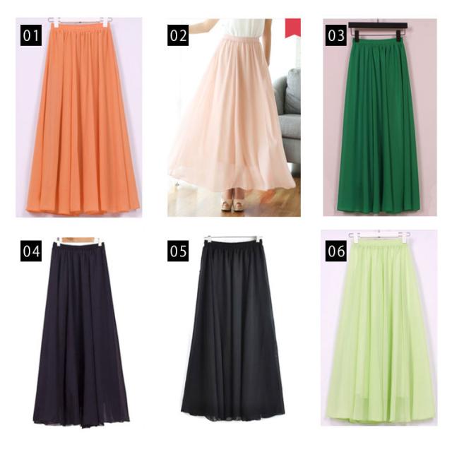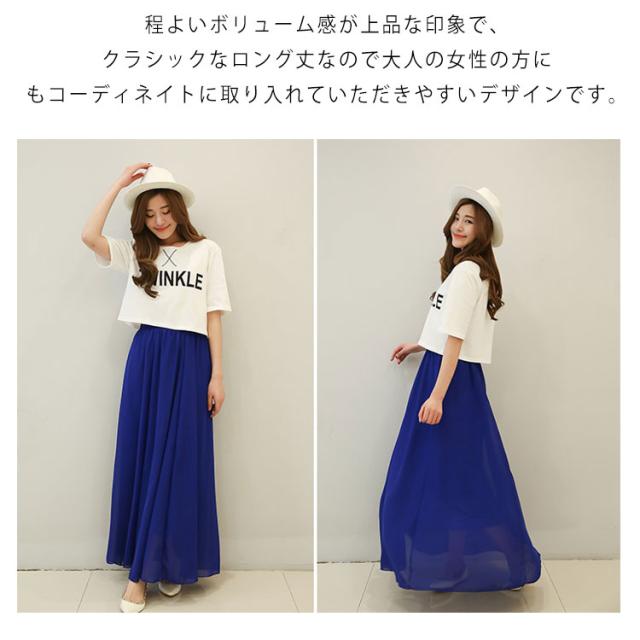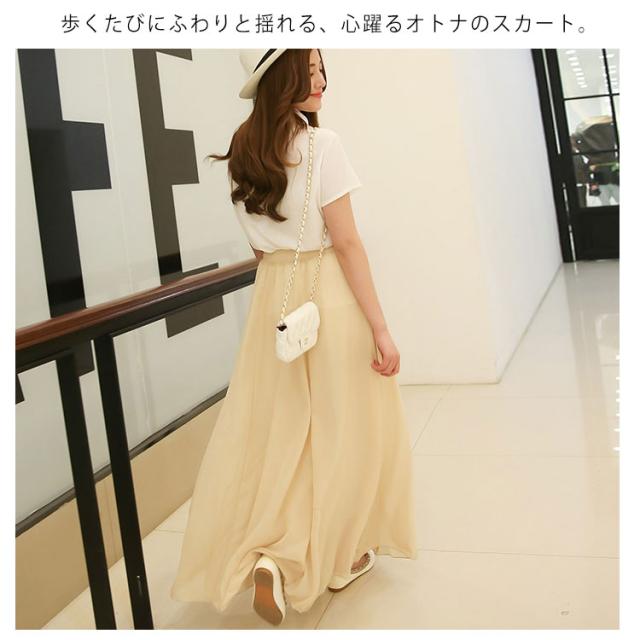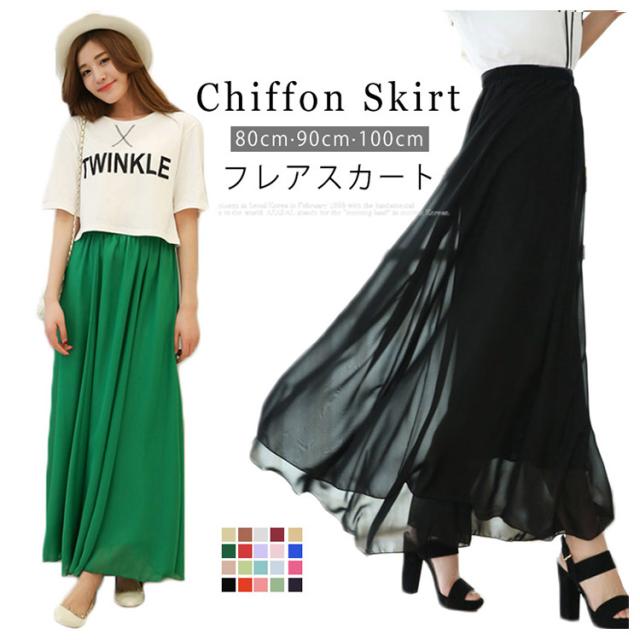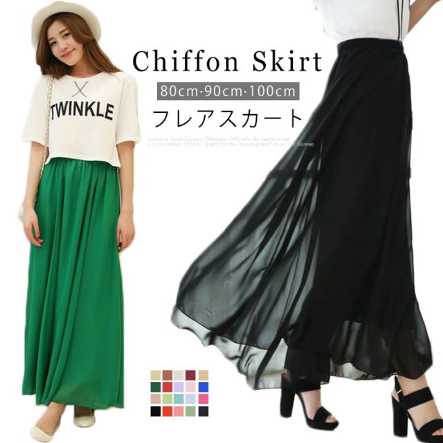 全24色 シフォンスカート マキシスカート レディース シフォン フレアスカート ロングスカート ロング丈 Aライン スカート シフォン スカート マキシ丈スカート 送料無料