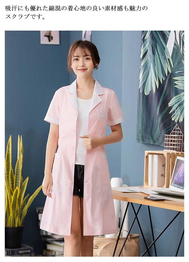【送料無料】看護師 介護士 白衣 女性 半袖 ワンピース レディース ナース 医師 スクラブ ホワイト ピンク ユニフォーム ナース服 医療用 おしゃれ メンズ ジャケット 大きいサイズ 医療 制服 ナースウェア 診察衣