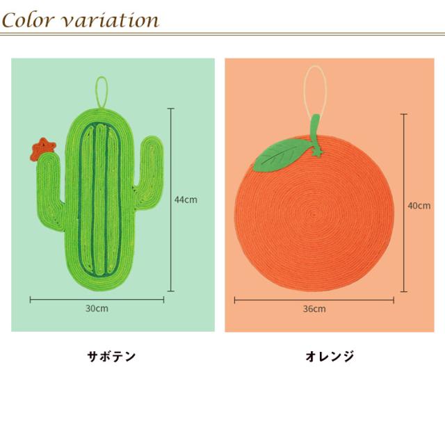 | ・ダンボール嫌いにおすすめ、天然サイザル麻毛の爪とぎマット!ついついずガリガリしちゃいますよ! ・これ1枚置いておくだけて、ネコちゃんがやって来て爪とぎしていきますよ。 ・天然素材の風合いが落ち着くにゃぁ〜 ・原料のサイザル麻の肌触りは猫の舌触りにも似てると言われ、猫の爪とぎにオススメです。 ・猫は引っかいたり寝たり、壁に掛けたり、平らに置いたりして、自由に置くことができます。 | |