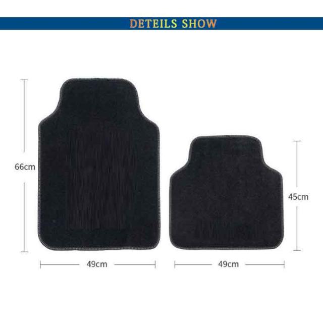 | 自動車用フロアマット1台分4枚セット。 しっかりとした厚みで、足置くにはクッション性が抜群のポリエステル素材で生産されています。 簡単に設置できます。 型崩れとズレを防止する為、裏面には滑り止め加工が施されています。 幅広い車種にピッタリフィットする汎用サイズ。 | |