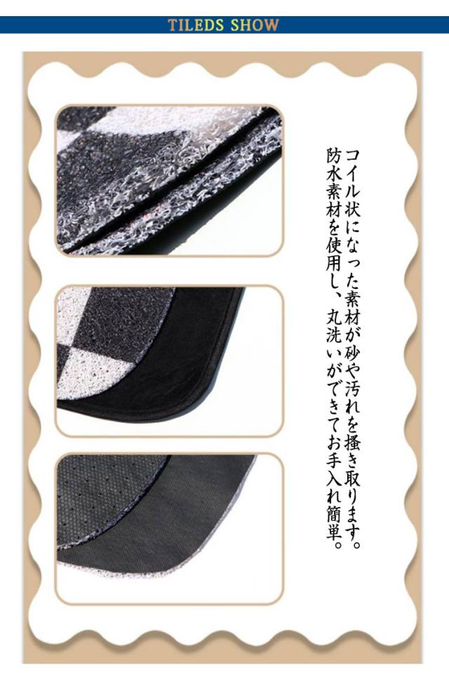 | おしゃれなチェック柄コイルマット。 コイル状になった素材が砂や汚れを?き取ります。 防水素材を使用し、丸洗いができてお手入れ簡単。 幅広い車種に対応する汎用マット。 | |