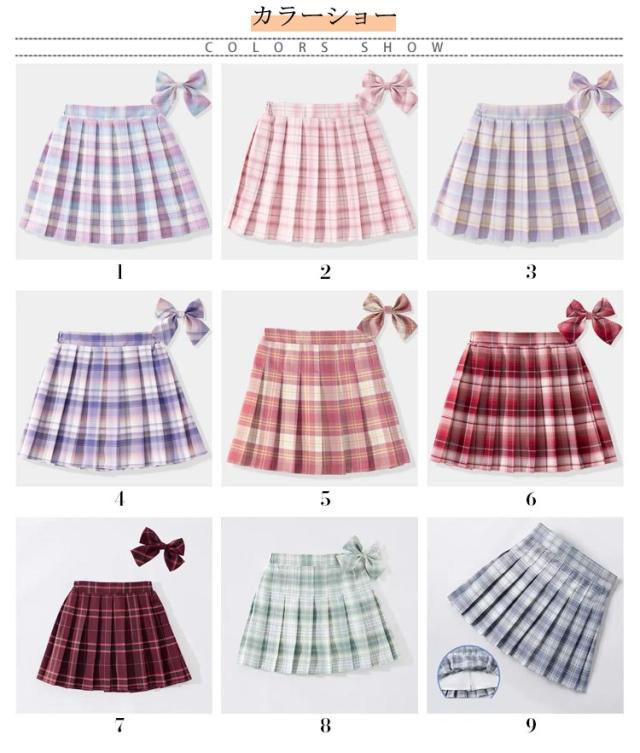 プリーツスカート キッズ 女の子 ミニスカート フレアスカート リボン ネクタイ付き チェック柄 スクールスカート 制服 ガールズ 小学生 ショート丈 ふんわり aライン ボトムス 子供服 子ども服 キッズ服 JK制服 通学 通園 発表会 コスプレ衣装 ダンス衣装 送料無料 春夏