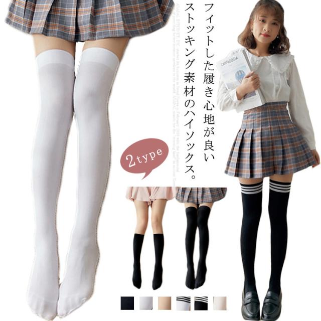 ストッキング ハイソックス ソックス 下着 靴下 伝線しにくい 静電気防止 薄手 春夏用 ストレッチ 通学 高校生 美脚 お洒落 コスプレ 送料無料