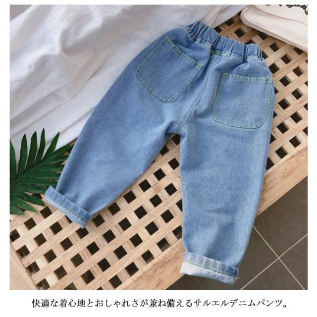 子供服 サルエルパンツ デニム パンツ 長ズボン 送料無料 キッズ ボトムス ジーンズ ウェストゴム サルエル おしゃれ サルエル デニムパンツ 90 100 110 120 130 女の子 男の子 通学 通園