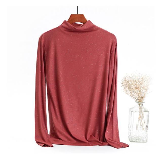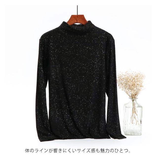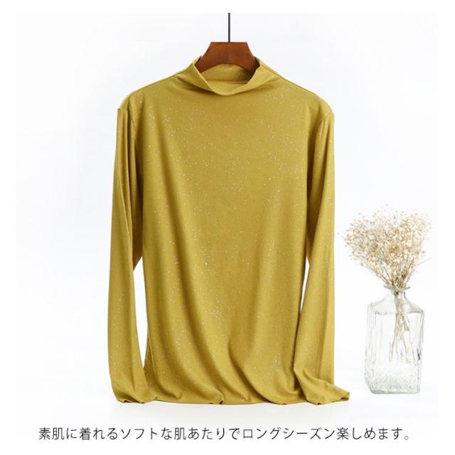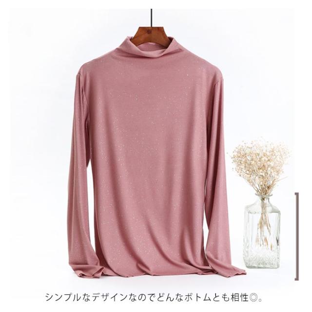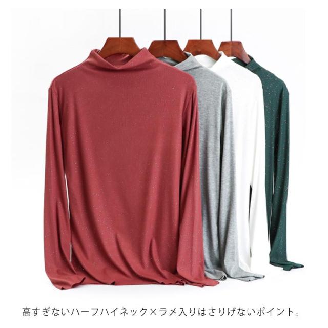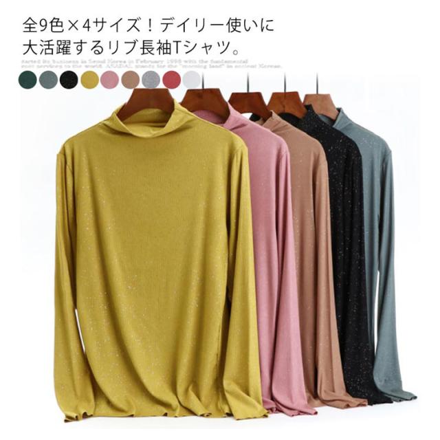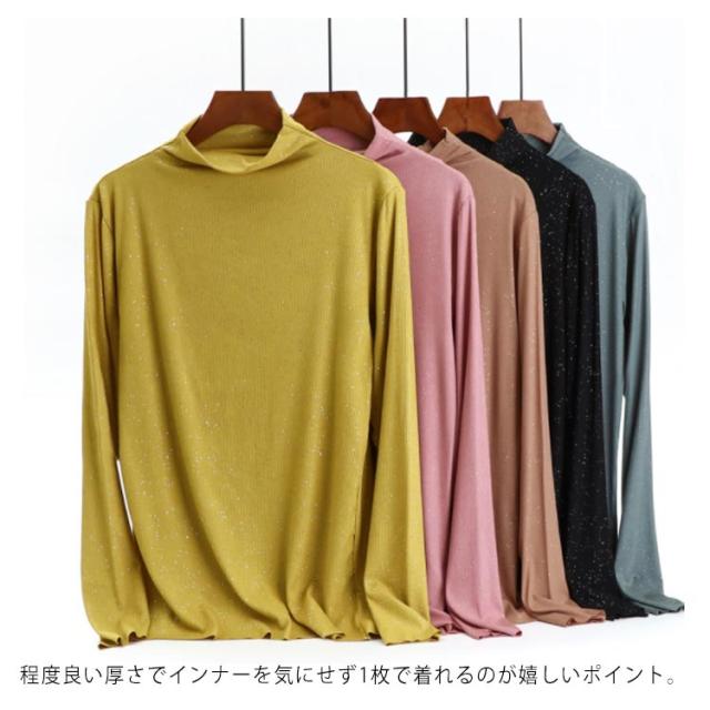 全9色×4サイズ!ラメ入りリブニット ハーフハイネック リブニット リブ編み 長袖tシャツ ニットソー ハイネック tシャツ インナー ラメ入り トップス 長袖 伸縮性 春 秋 冬 おしゃれ 大人 可愛い