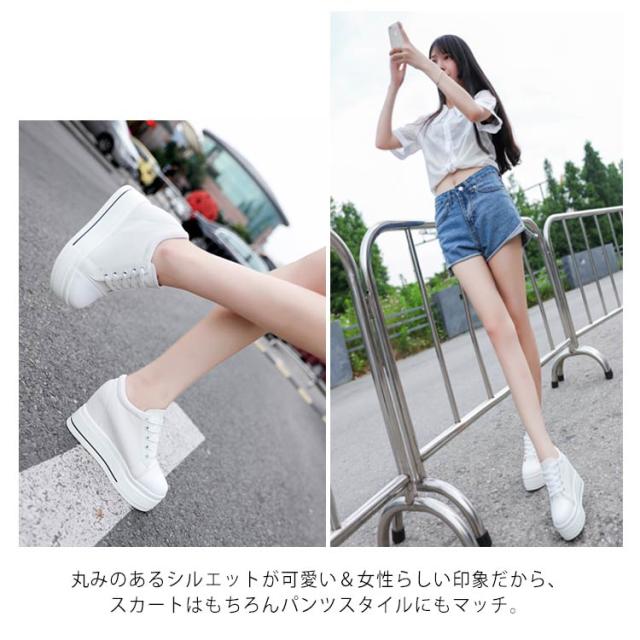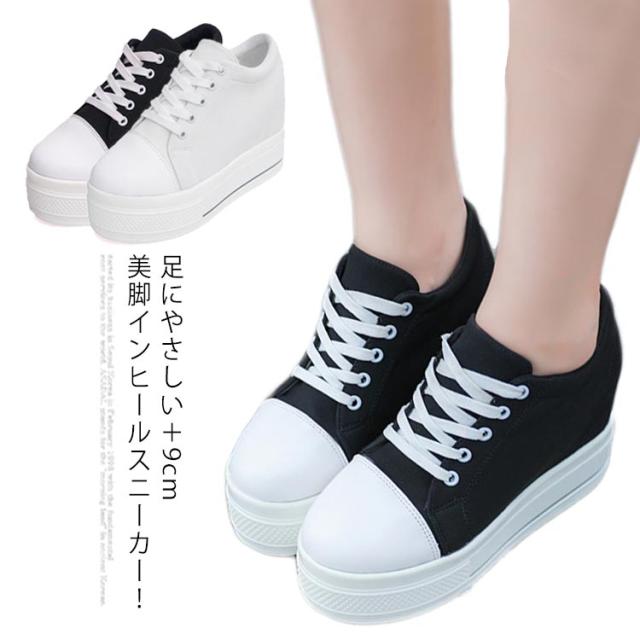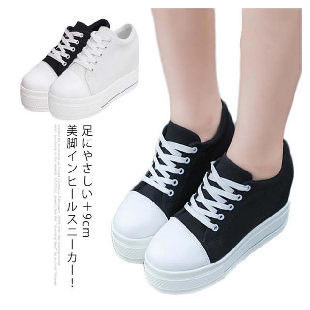 インヒールスニーカー スニーカー インヒール レディース 厚底 厚底スニーカー レースアップ 美脚 シューズ 靴 歩きやすい キャンバス 春 秋