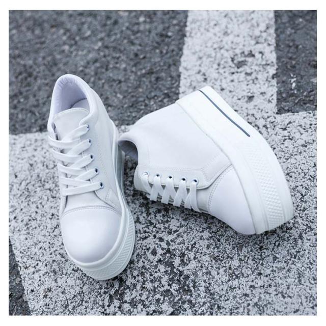 | 足にやさしい+9cm美脚インヒールスニーカー! パッと見はフラットシューズなのに、厚底+インヒールだから、履くだけでこっそり足長美脚をゲットできちゃう。 インソールには、足の負担を軽減するクッション入り。 丸みのあるシルエットが可愛い&女性らしい印象だから、スカートはもちろんパンツスタイルにもマッチ。 シンプル定番のブラックとホワイトの2色を用意します。 | |