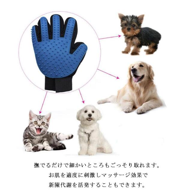 | [多用]犬と猫など毛があるペットに使えるマッサージブラシです。柔らかくて通気性が抜群なグローブは小型から大型までのペットに適用します。 「毛取り便利」抜け毛の取りは便利です。ブラッシングやマッサージや入浴グルーミング、また、カーペット掃除などの方面にご使用することができます。 「特別なデザイン」五指型デザインのブラシ表面に多くのシリコンの突起がありますので、より深く、隠れた毛まで届きます。 撫でるだけで細かいところもごっそり取れます。お肌を適度に刺激しマッサージ効果で新陳代謝を活発することもできます。 そして、リストバンド調節可能で、誰でも手のひらにぴったりフィットできます。使い後、グローブに付着した毛は簡単に取り除けます。 | |