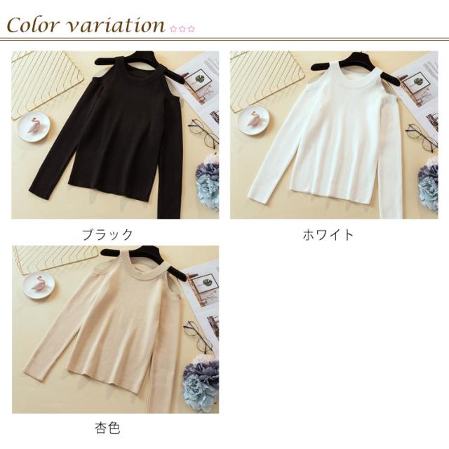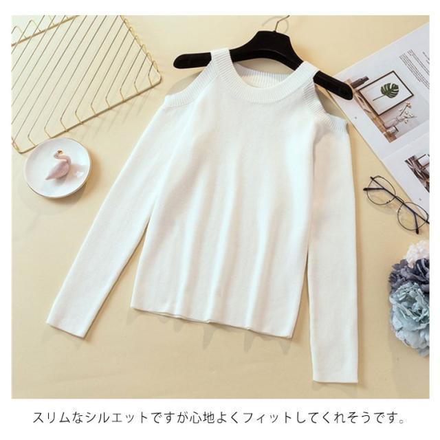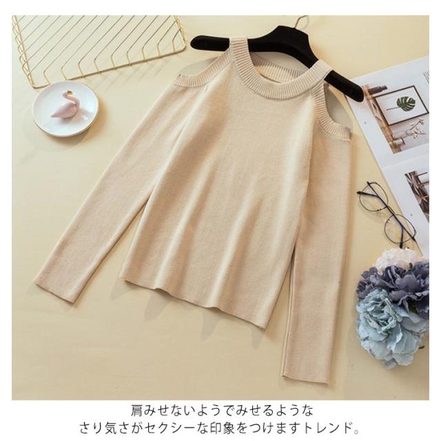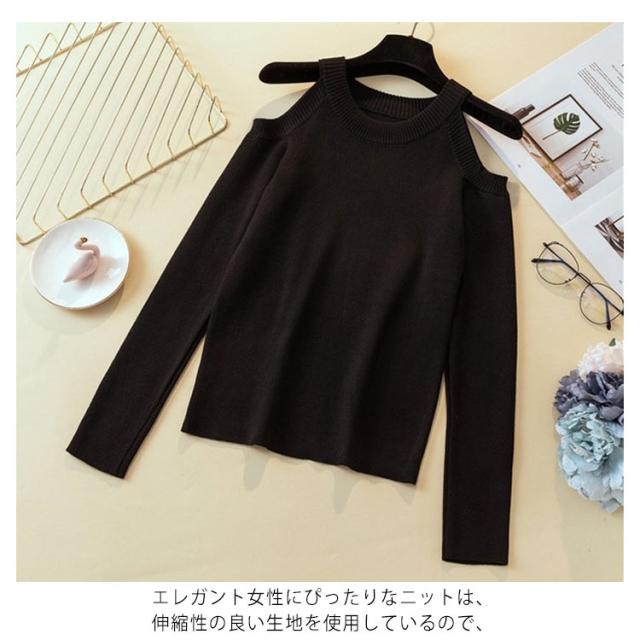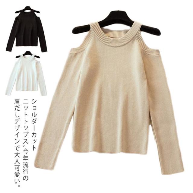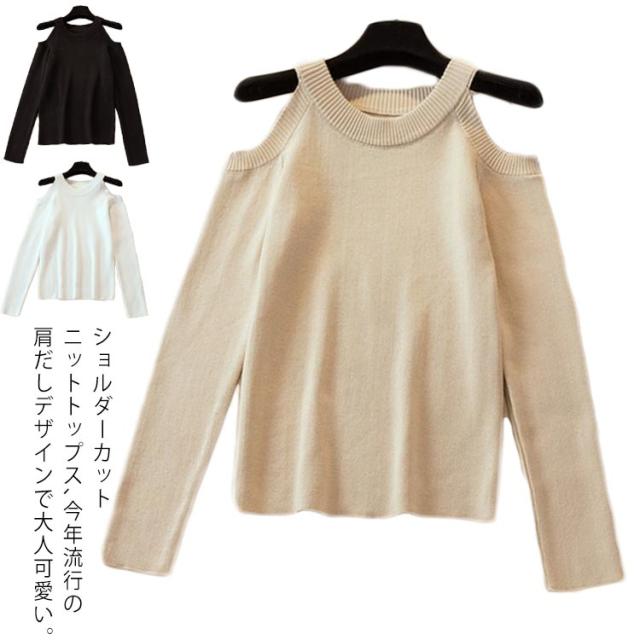 ニットトップス タイトニット オフショルダーニット 肩出し ニットセーター インナーニット レディース 無地 トップス 長袖 セクシー 可愛い 新作