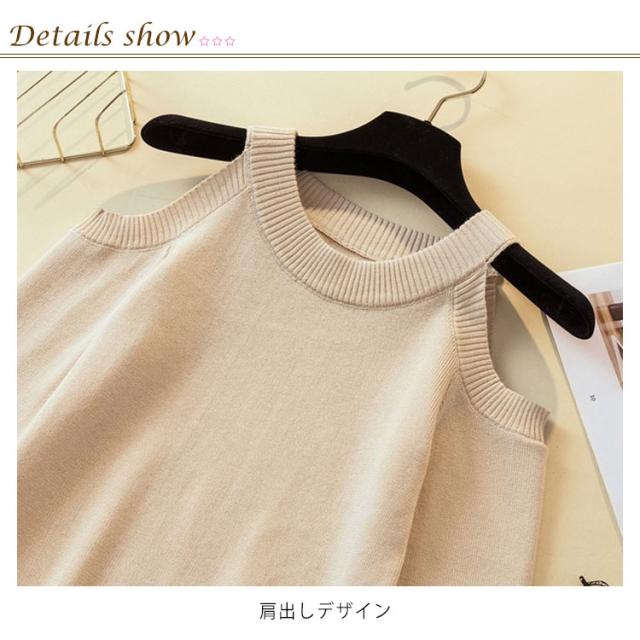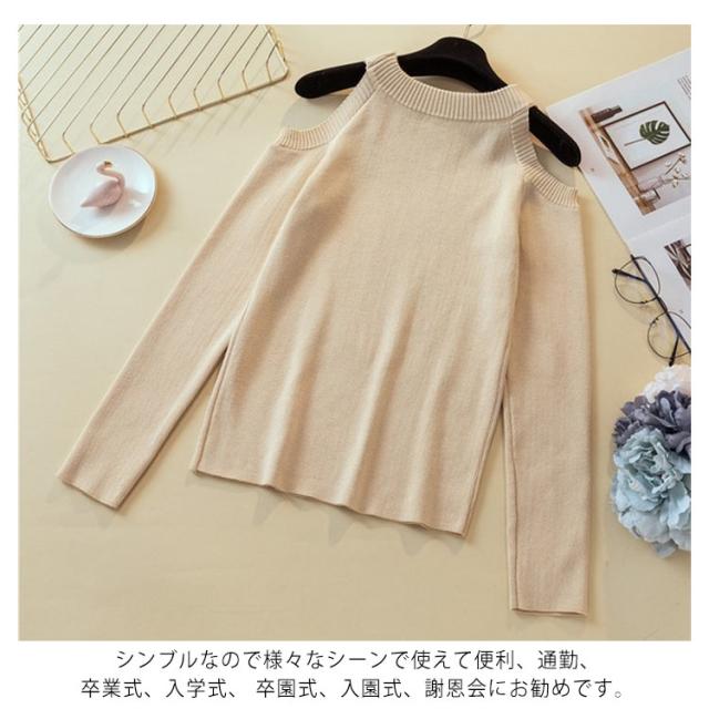 | ショルダーカットニットトップス、今年流行の肩だしデザインで大人可愛い。 エレガント女性にぴったりなニットは、伸縮性の良い生地を使用しているので、 スリムなシルエットですが心地よくフィットしてくれそうです。 肩みせないようでみせるようなさり気さがセクシーな印象をつけますトレンド。 シンブルなので様々なシーンで使えて便利、通勤、卒業式、入学式、 卒園式、入園式、謝恩会にお勧めです。 | |