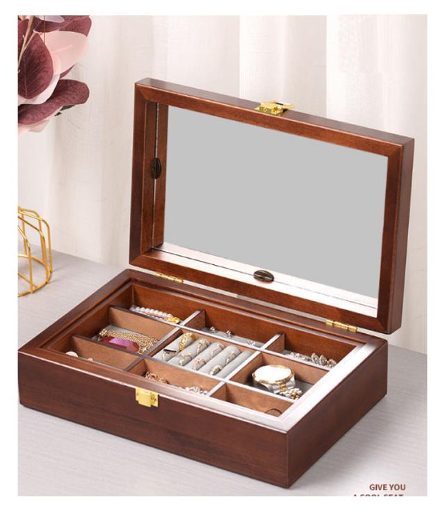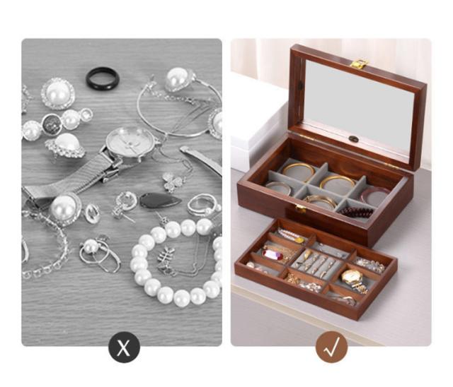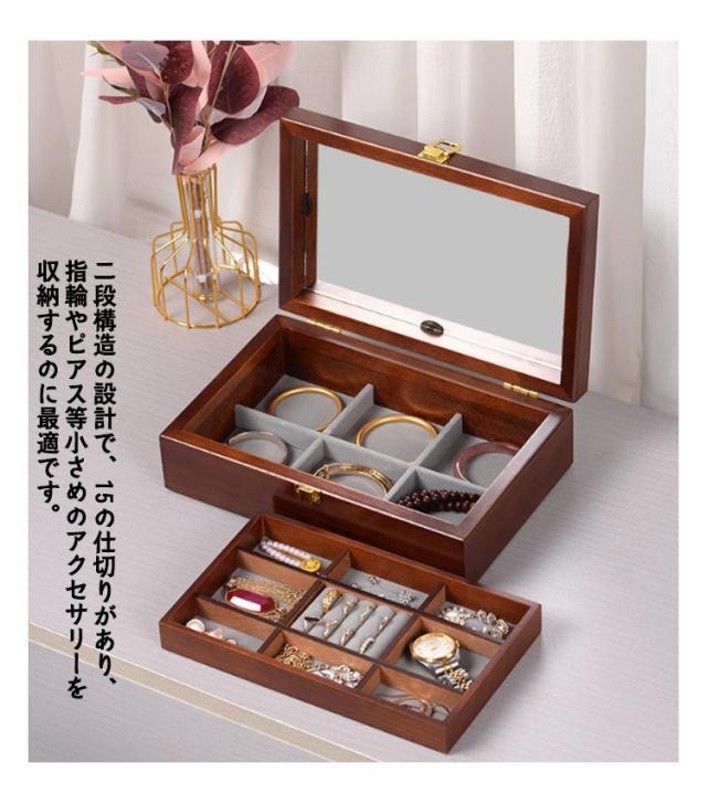 ジュエス レディース 木製 アクセサリーケース アンティーク 鏡付き 指輪 高級感 腕時計 収納ケース ビアス 小物入れ ブレスレット バングル 腕時計 収納 北欧 女性 妻 母 誕生日 プレゼント 2段