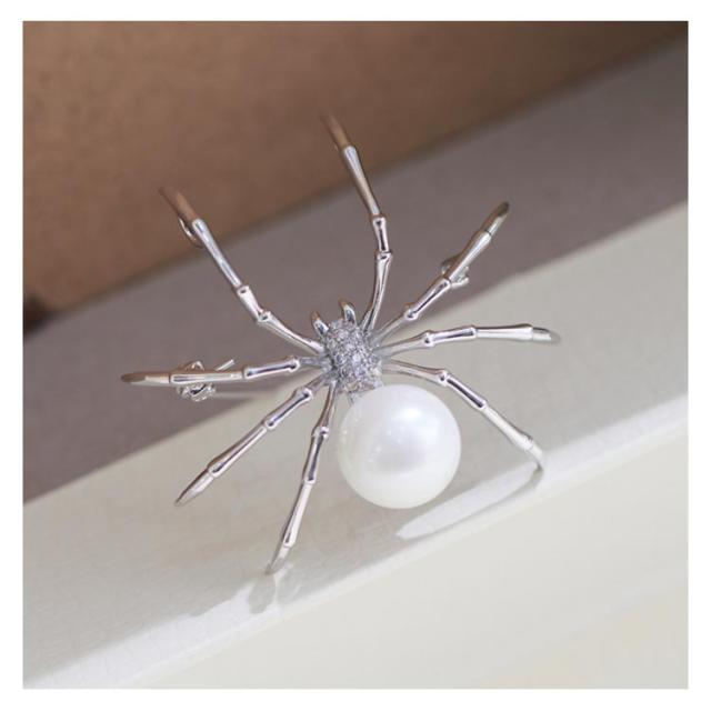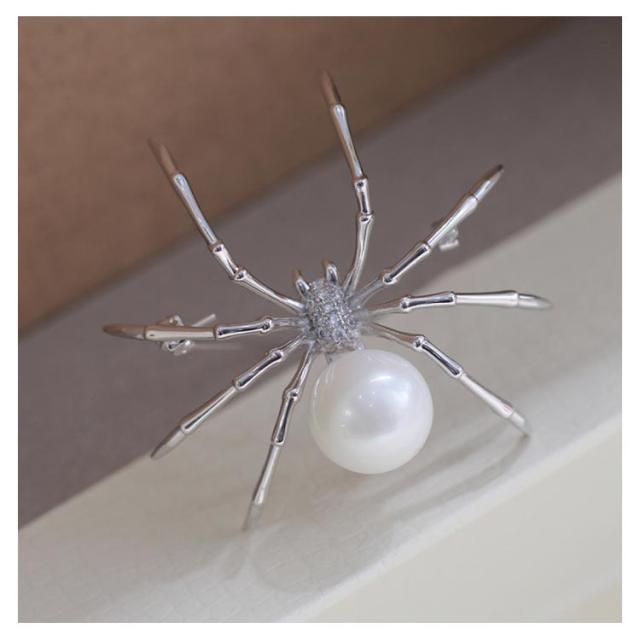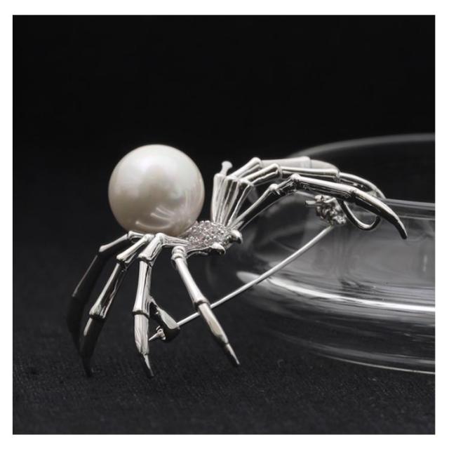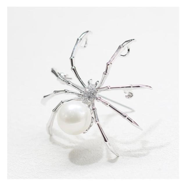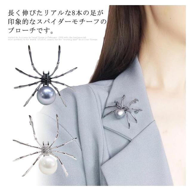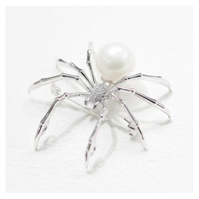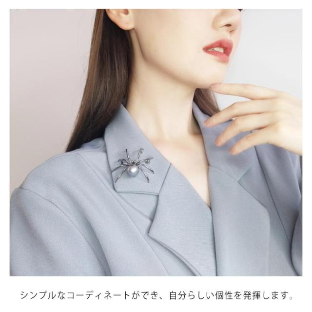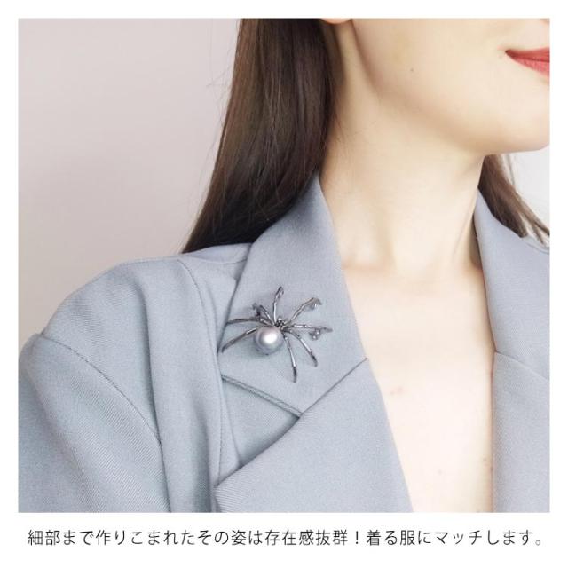 ブローチ アクセサリー クリップ パール クモ柄 蜘蛛 パーティー 卒業式 結婚式 ワンピース ジャケット フォーマル お洒落 プレゼント 送料無料