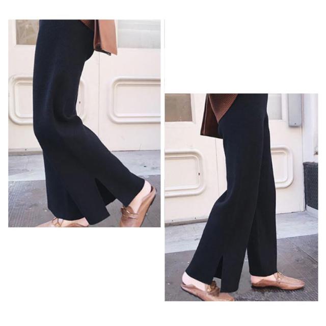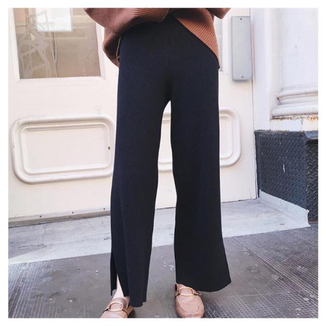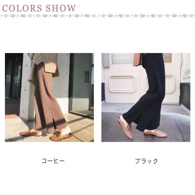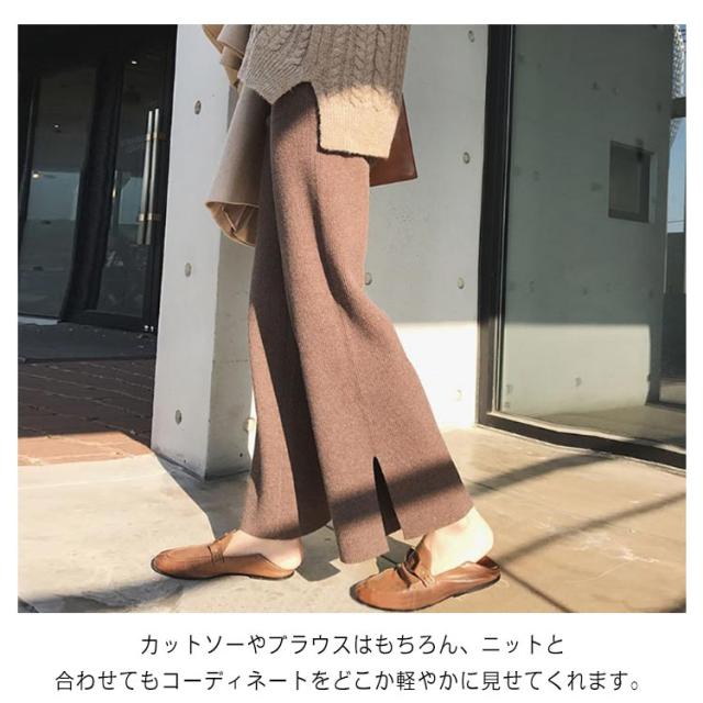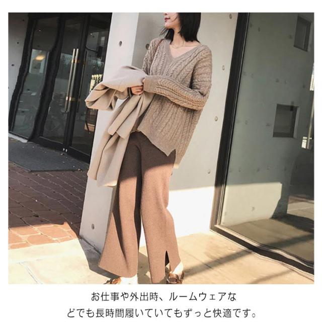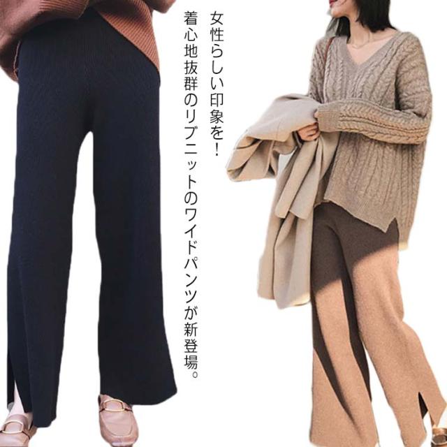 ワイドパンツ ガウチョパンツ レディース ロングパンツ 無地 カジュアル ニットパンツ ゆったり ウエストゴム ボトムス お洒落 秋冬 ストレート ハイウエスト リラックス