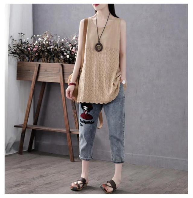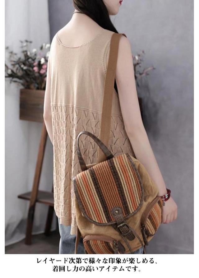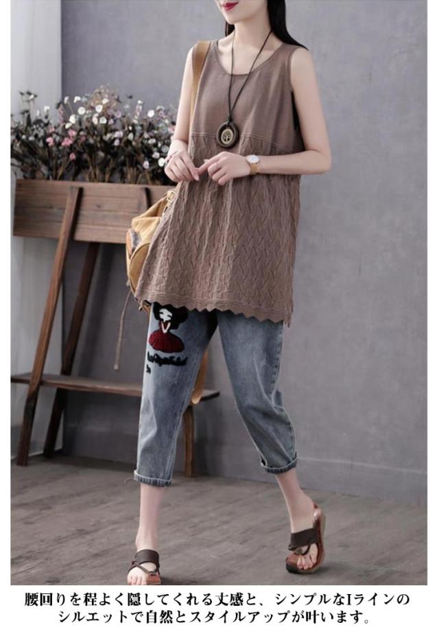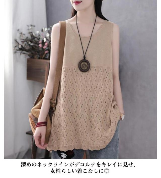 送料無料 サマーニットタンクトップ ニットベスト サマーニット ノースリーブ 無地 ケーブル編み 薄地 涼しい 可愛い チュニック インナー 重ね着 レイヤード Aライン ゆったり ストレッチ おしゃれ 着痩せ 春 夏 秋