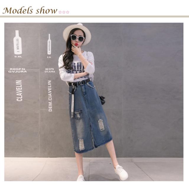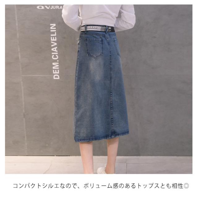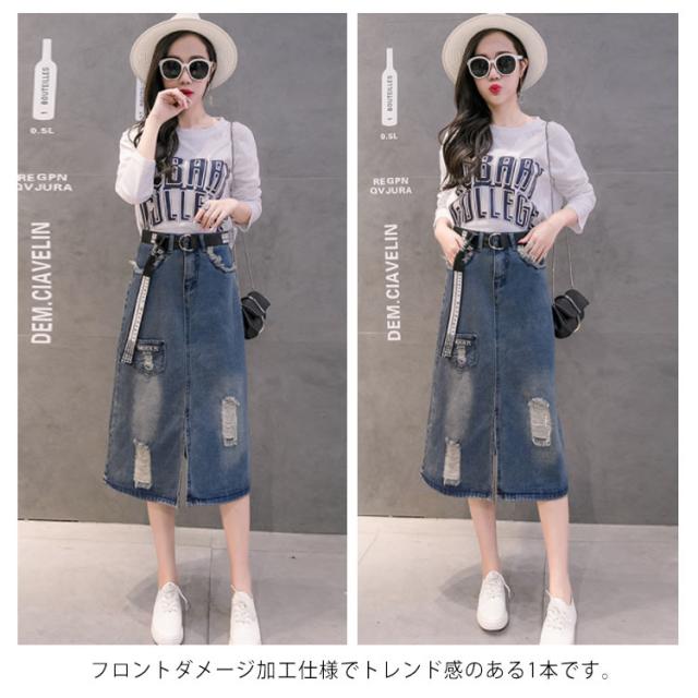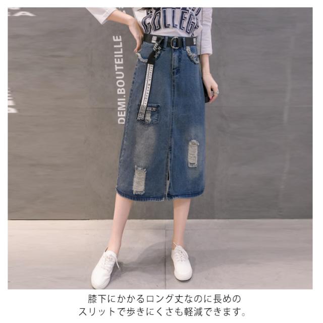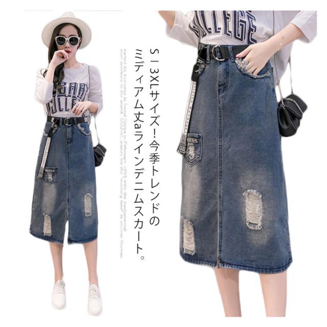 デニムスカート ミディアム ダメージ加工 スカート ロングスカート ハイウエスト aラインスカート フロントスリット カジュアル ゆったり 春 夏 秋 おしゃれ 可愛い 大きサイズ