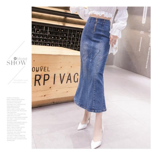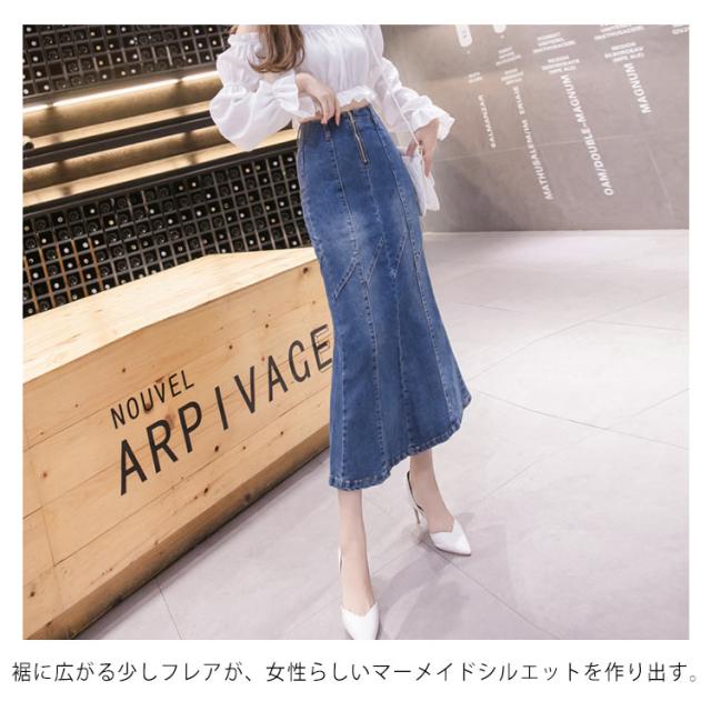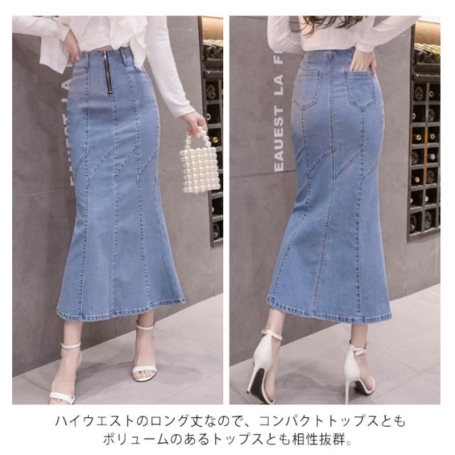 ハイウエストデニムスカート マーメイドシルエット デニムスカート デニム タイトスカート ロングスカート ロングデニムスカート デニムロングスカート タイト ロング丈 スカート 色落ち加工
