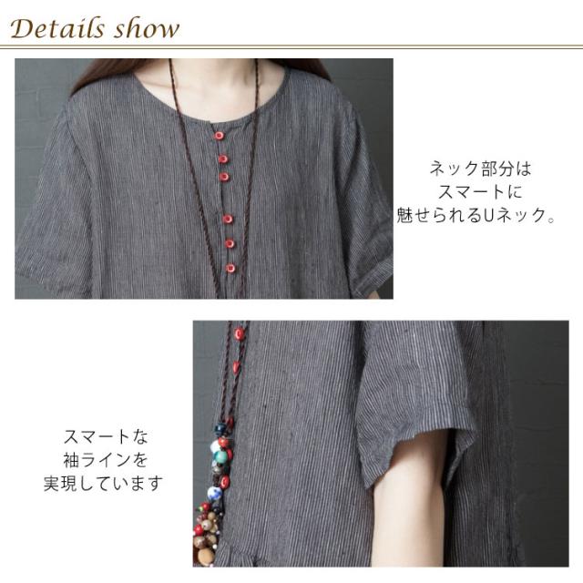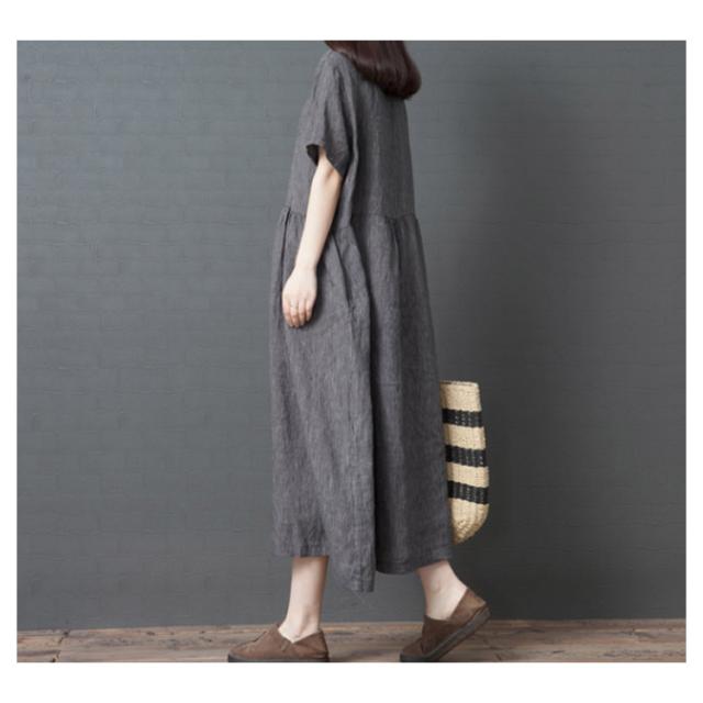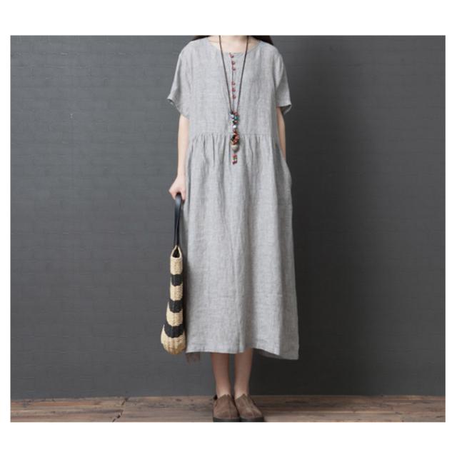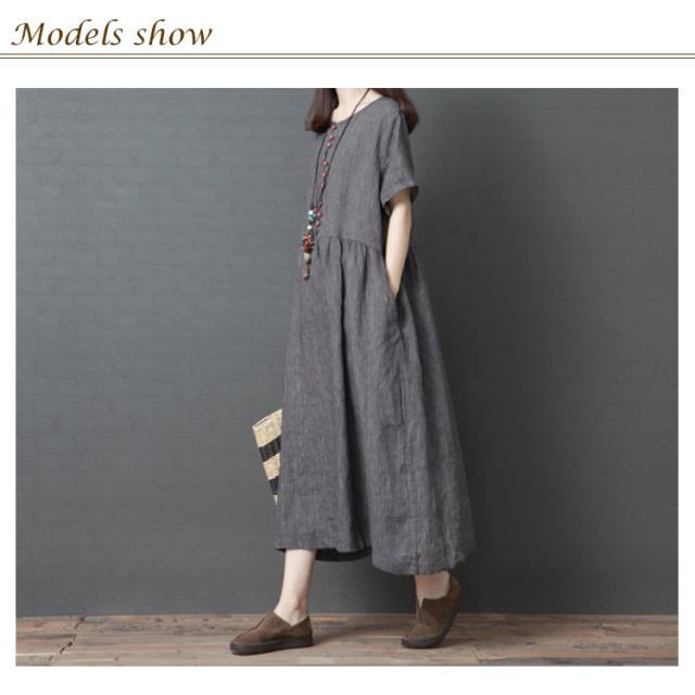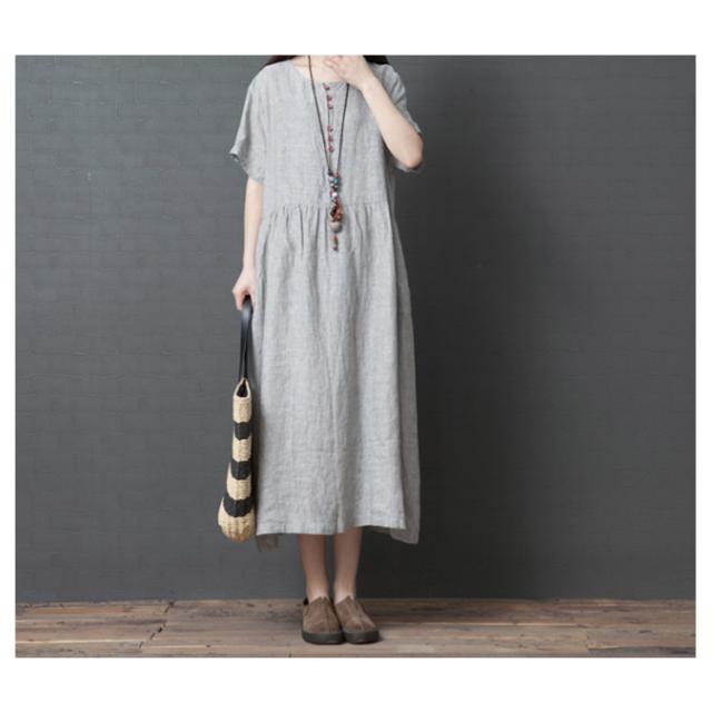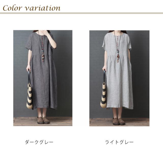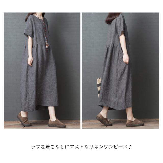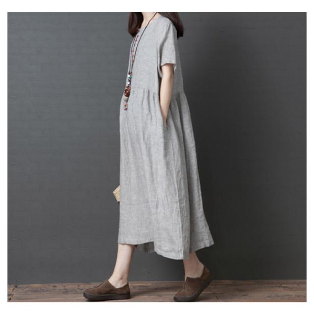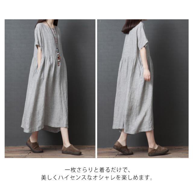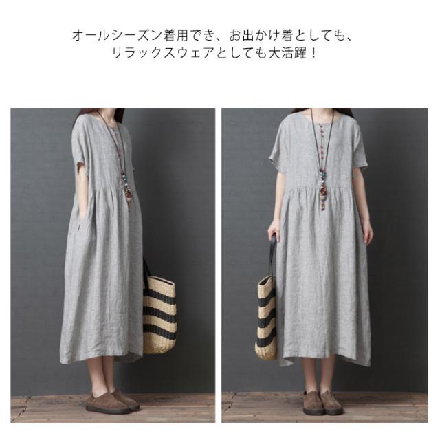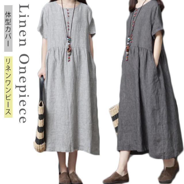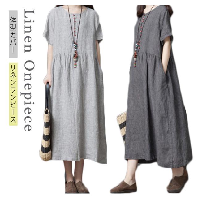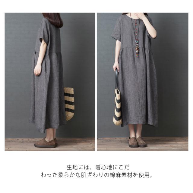 綿麻 ワンピース ミモレ丈 リネン ワンピース Aライン ワンピース ロングワンピース レディース 半袖 ワンピース リネンワンピース 綿麻ワンピース 体型カバー 送料無料