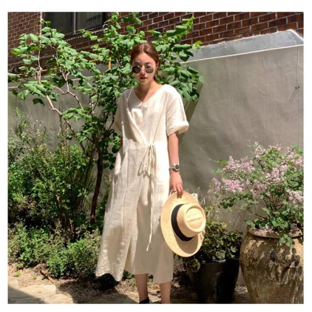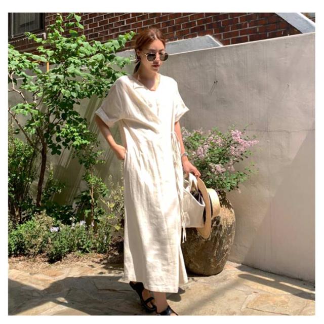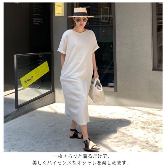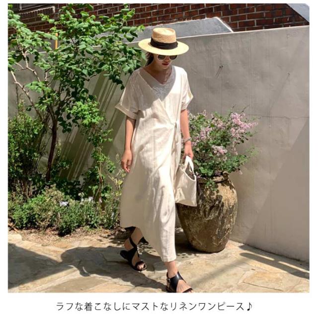 | ラフな着こなしにマストなリネンワンピース♪ 生地には、着心地にこだわった柔らかな肌ざわりの綿麻素材を使用。 一枚さらりと着るだけで、美しくハイセンスなオシャレを楽しめます。 | |
