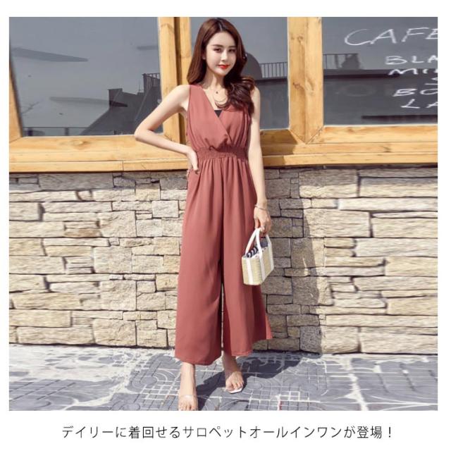 パンツドレス オールインワン ガウチョパンツ カシュクール サロペットパンツ オールインワン レディース サロペット オールインワン サロペットパンツ オールインワン オーバーオール ワイドパンツ ゆったり 着痩せ 送料無料