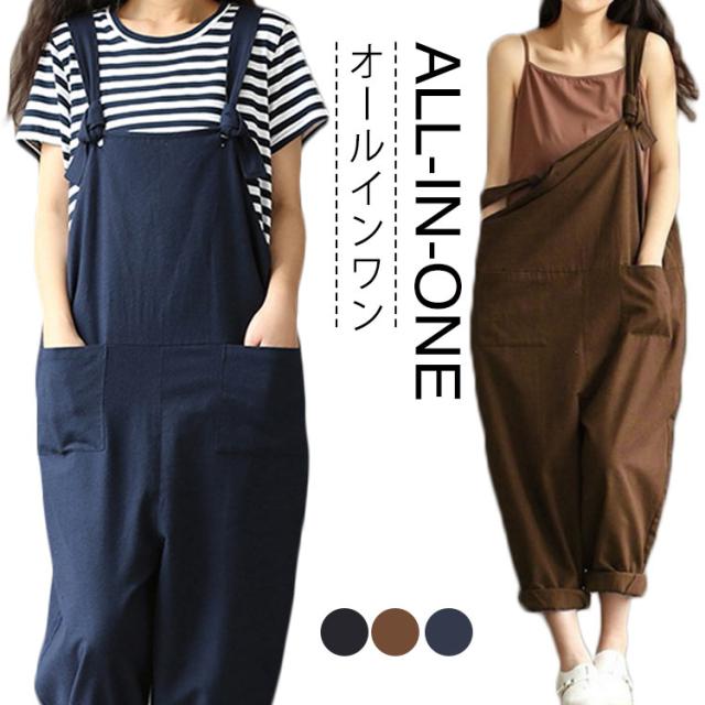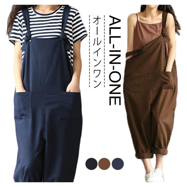 ロングパンツ オールインワン レディース サロペット ガウチョパンツ サロペット オールインワン オーバーオール サロペットパンツ オールインワン ワイドパンツ ゆったり 送料無料