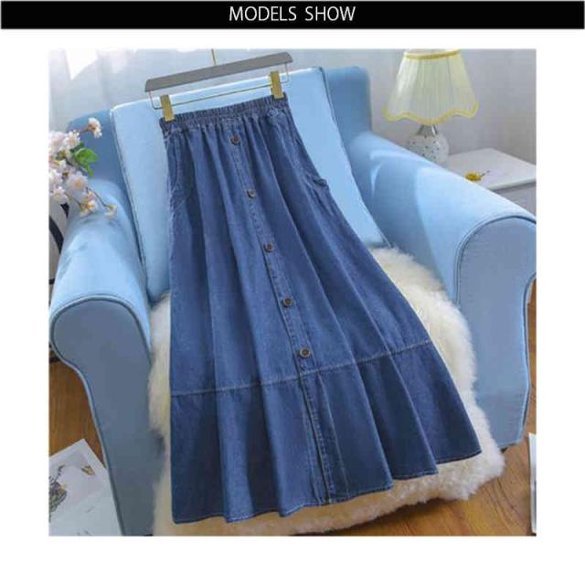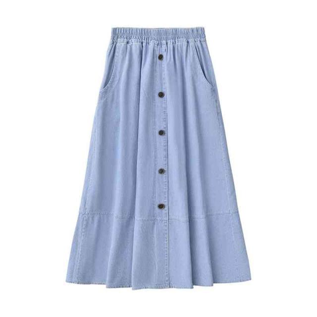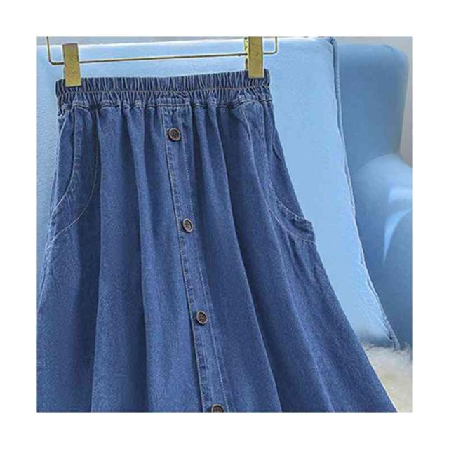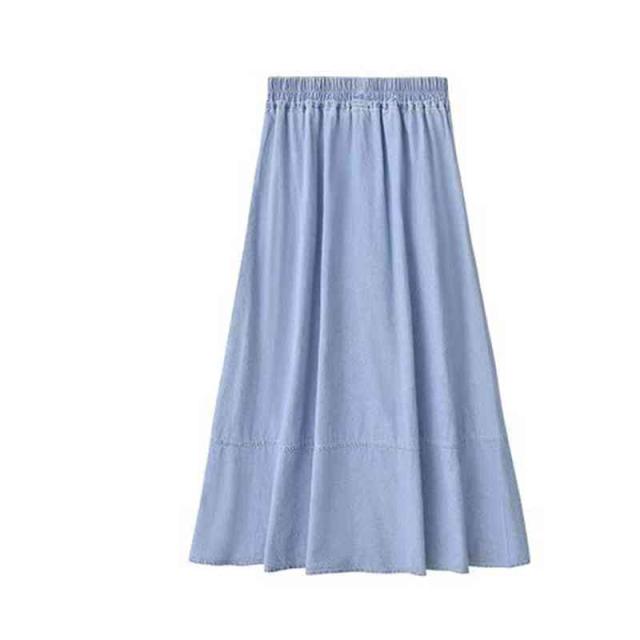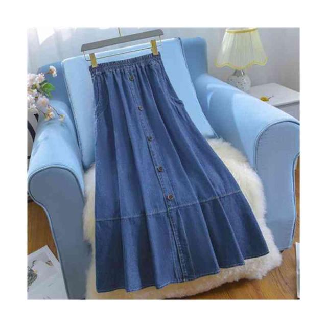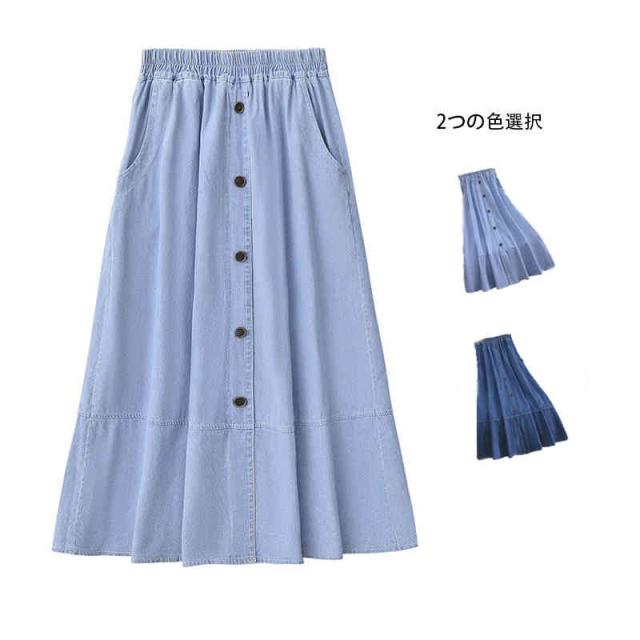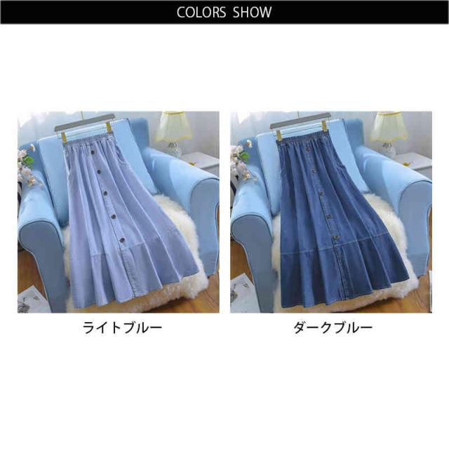 スカート レディース ロングスカート 夏用 大きサイズ ハイウエスト ウエストゴム デニムスカート Aライン 無地 ボトムス デニム フリルスカート シンプル カジュアル おしゃれ 送料無料 おしゃれ